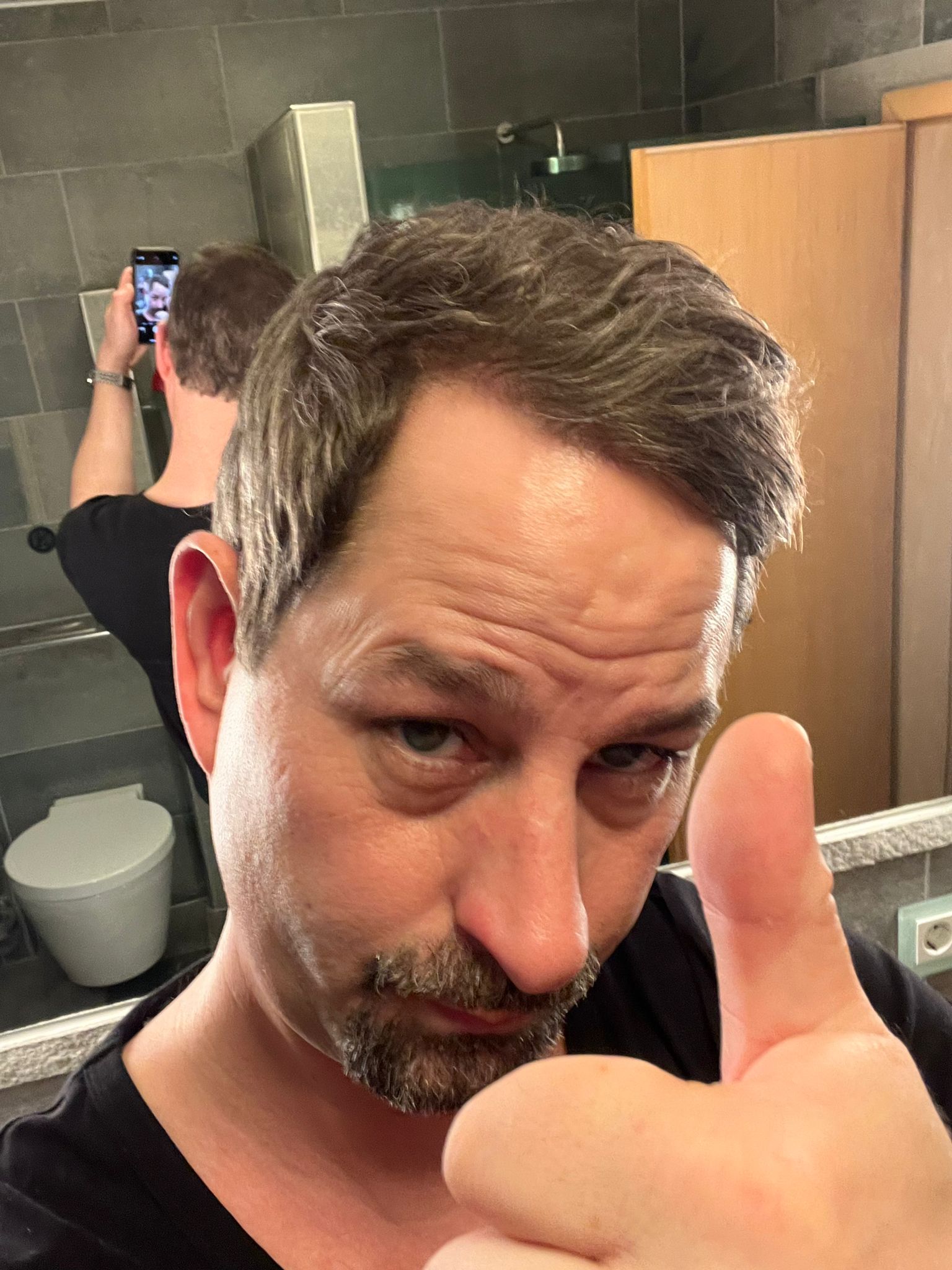 Es wurde sehr viel Wert auf die Wuchsrichtung gelegt und mit Liebe zum Detail gearbeitet. Auch hier schaut ihr euch am besten die Fotos an. Es sieht sehr natürlich aus und niemand aus dem weiteren Umfeld würde eine HT vermuten. Der Spender wurde nicht ausgebeutet. Darüber bin ich sehr froh, da ich seitlich leider mit Shockloss des Bestandhaares zu tun hatte. Wäre hier ohne Rücksicht auf Verluste entnommen worden, hätte es sich vielleicht nicht wieder erholt.