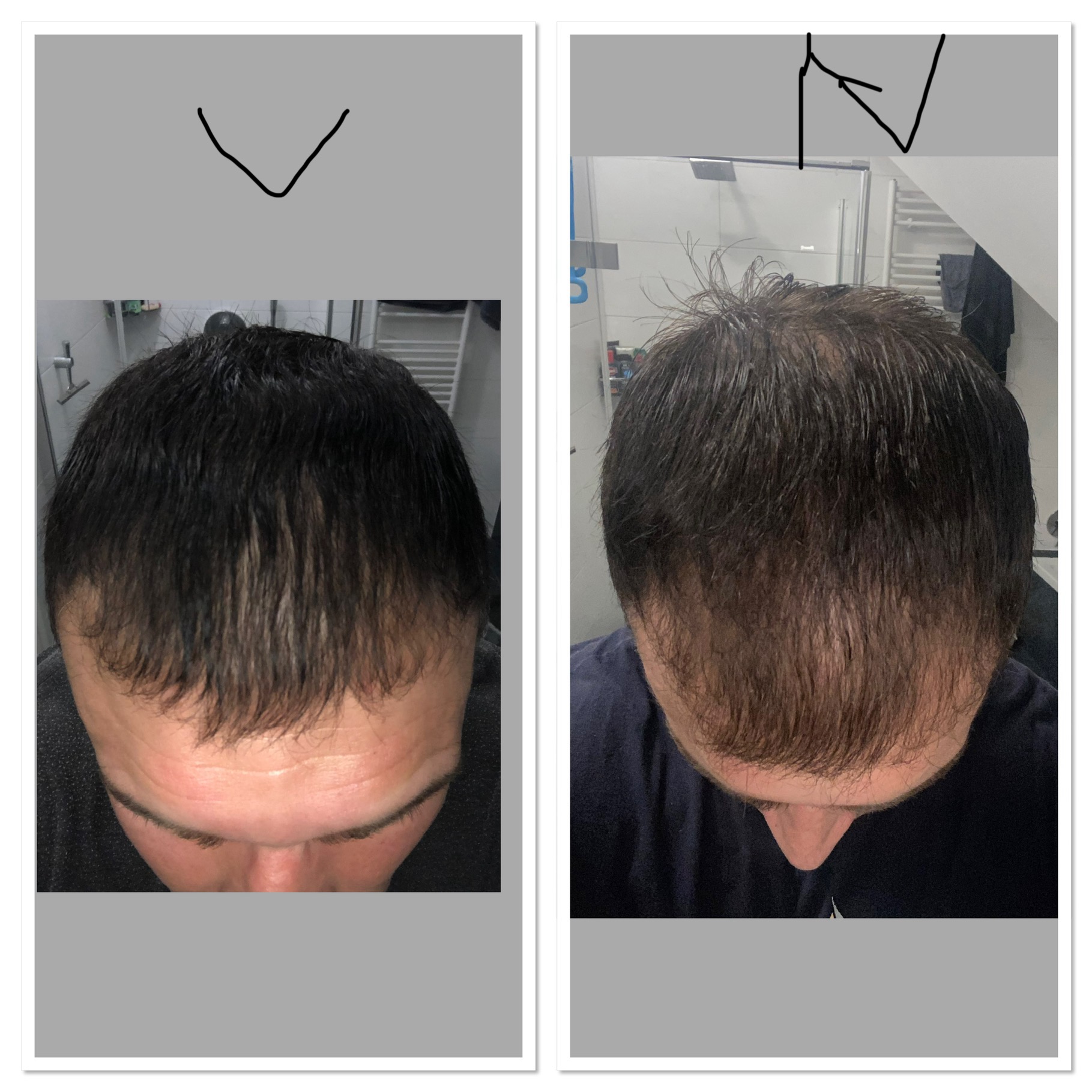 Bei den Doppelfotos sind die wo das schwarze „V“ eingezeichnet ist von vorher.(ca. 5-6 Jahre her).