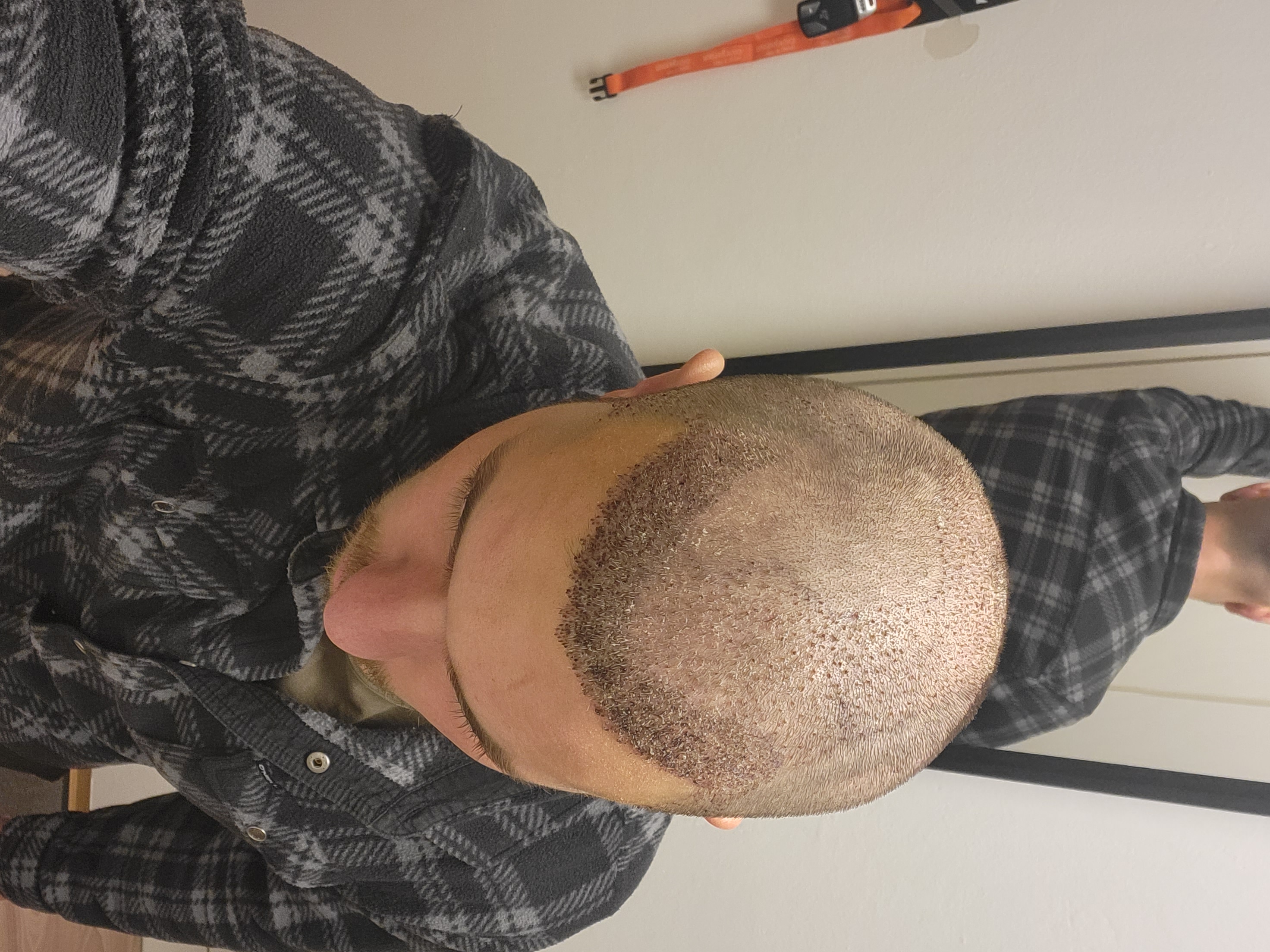 ich melde mich nochmal mit einem Update bei euch. Mittlerweile ist meine HT einen Monat. Das schwierigste nach der Operation sind die ersten 7 Nächte für mich gewesen, da man auf einem Nackenkissen schlafen musste um die Grafts nicht zu beschädigen. Schmerzen am Kopf hatte ich nicht.