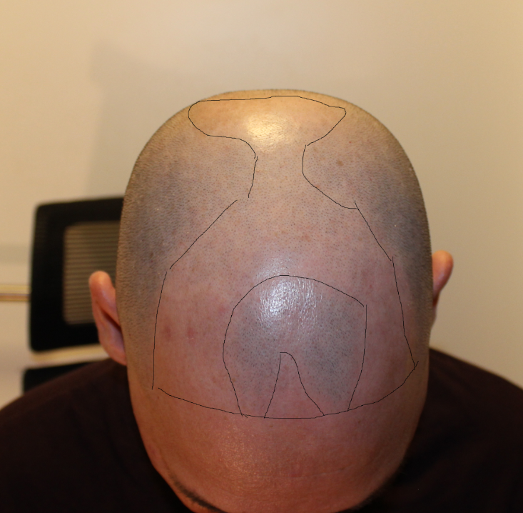 Immer noch schwierig einzuschätzen, am besten noch ein paar Wochen wachsen lassen. Auf den ersten Blick würde ich sagen, das Bestandshaar und der Donor sehen verhältnismäßig gut aus. Die erste OP würde nicht alles abdecken, aber der Unterschied wäre bereits enorm.