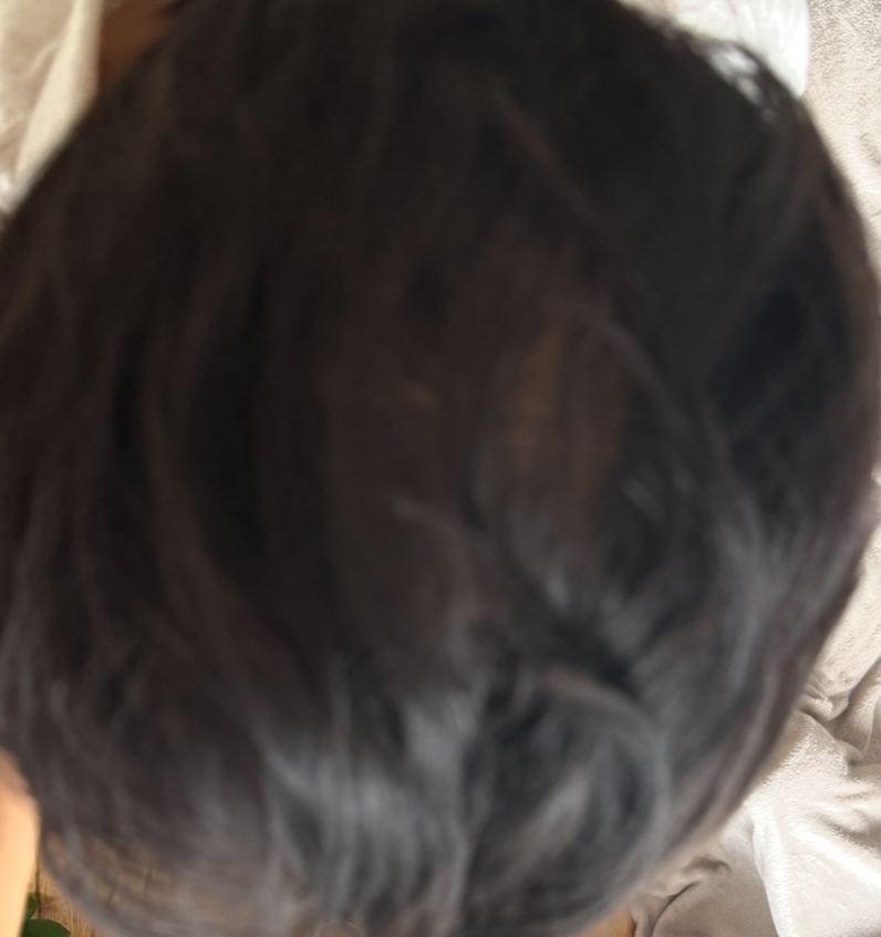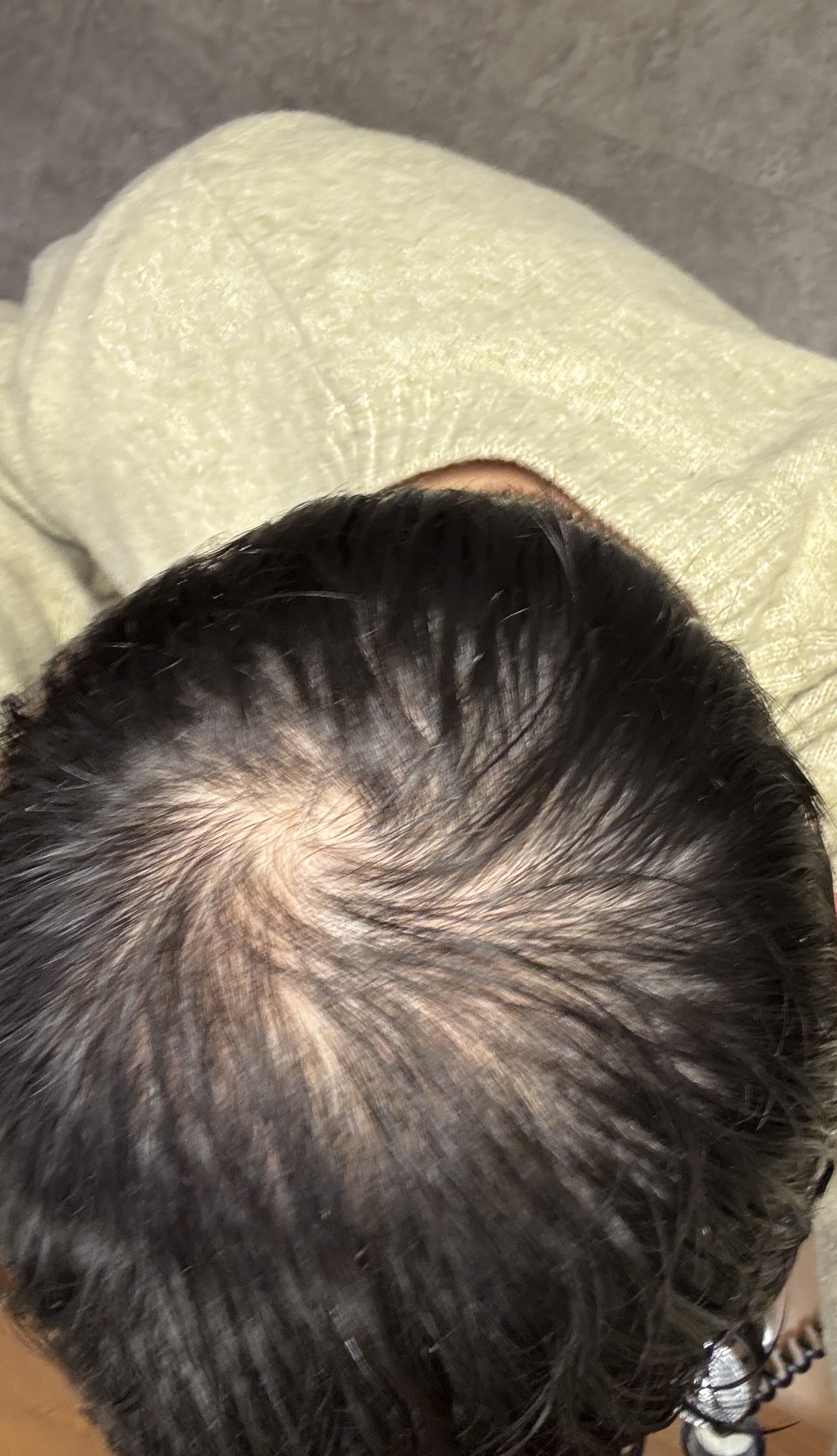Mach die Haare mal nass und kämm sie nach vorn, dann ein Bild von oben.
