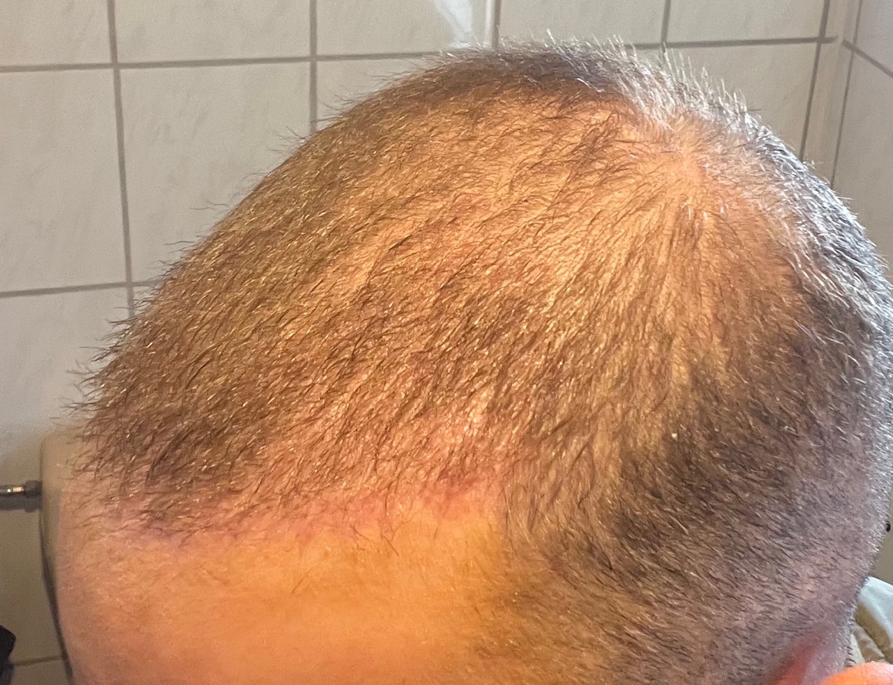 Zumal die transplantierten Haare in dicke als auch in Farbe noch anders sind, als die restlichen auf meinem Kopf. Bin gespannt, wie es aussehen wird, wenn die sich angeglichen haben nach dem Ausfall.