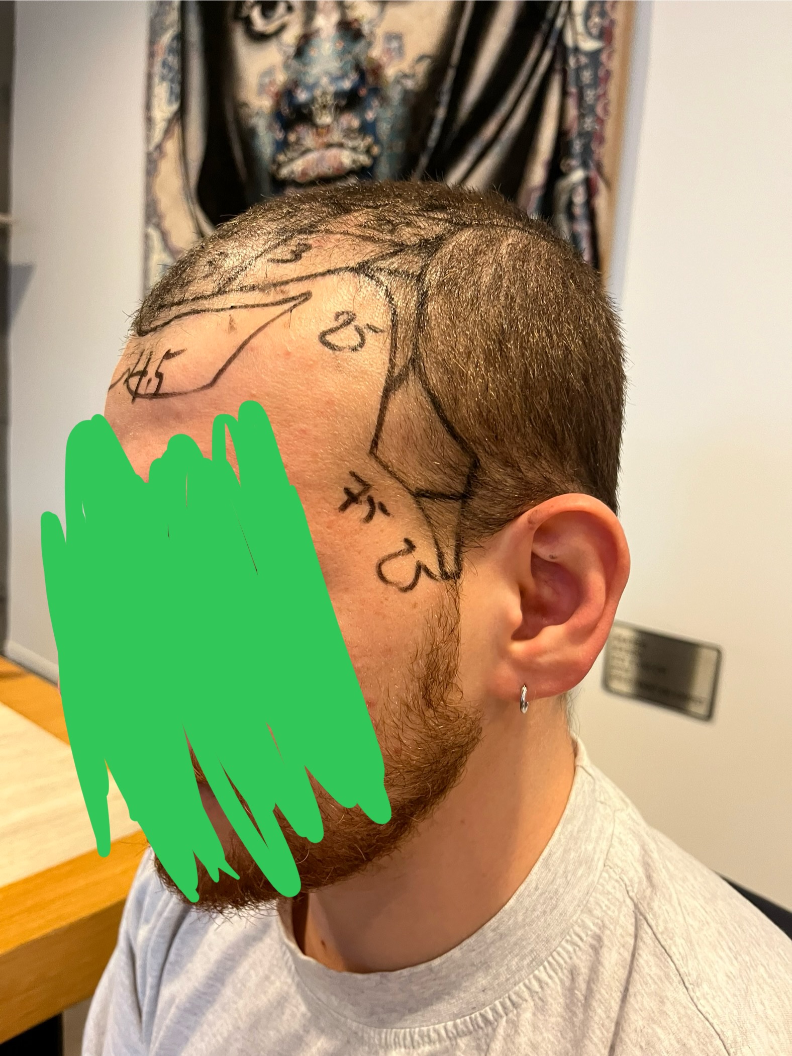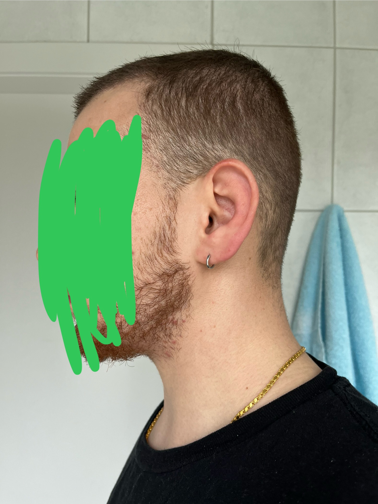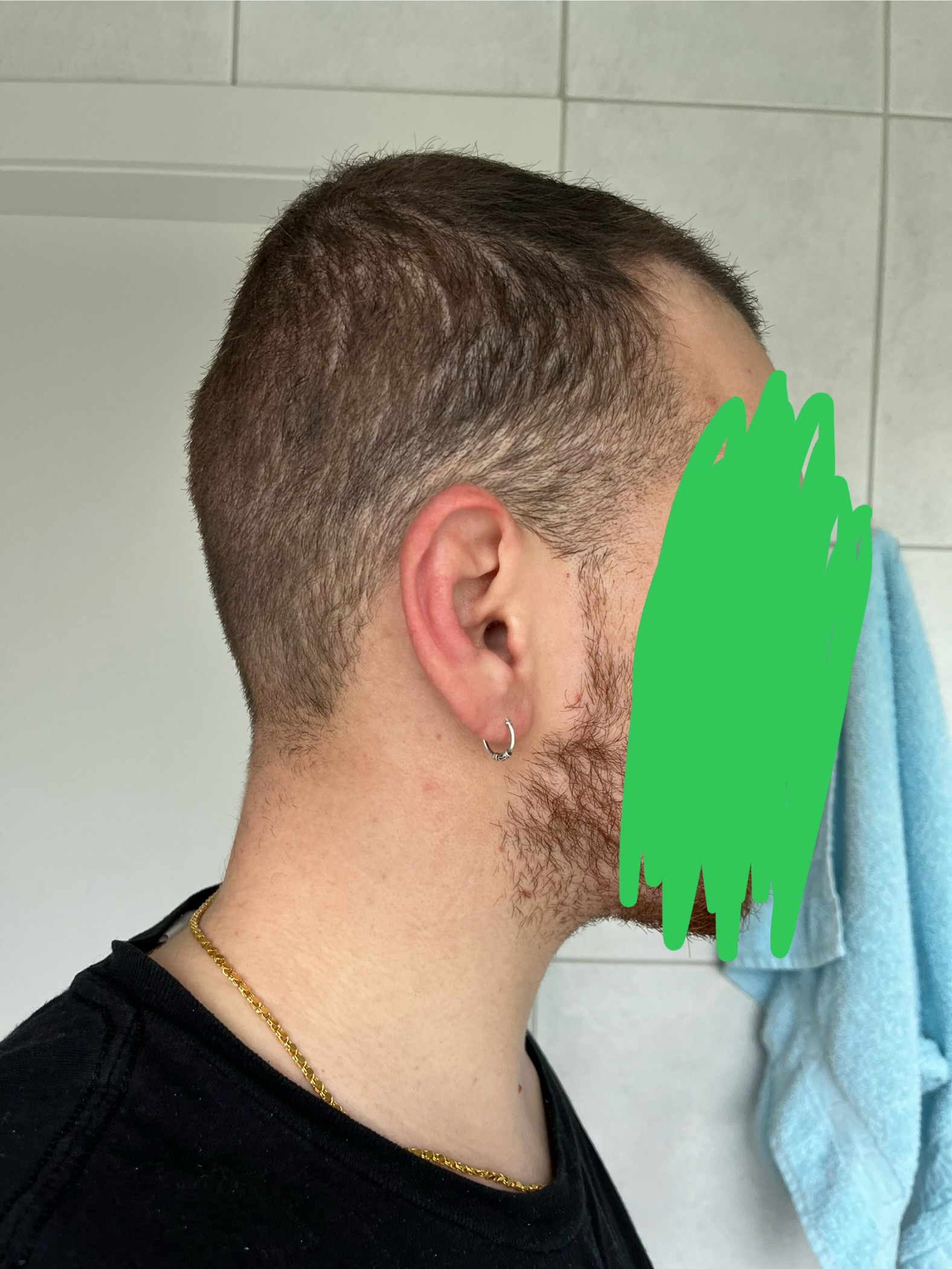 So hat es nach 5 Wochen ausgesehen. Ich hatte interessanterweise nicht viel Shock loss. Ich denke mal so 40-50% der transplantierten Haare