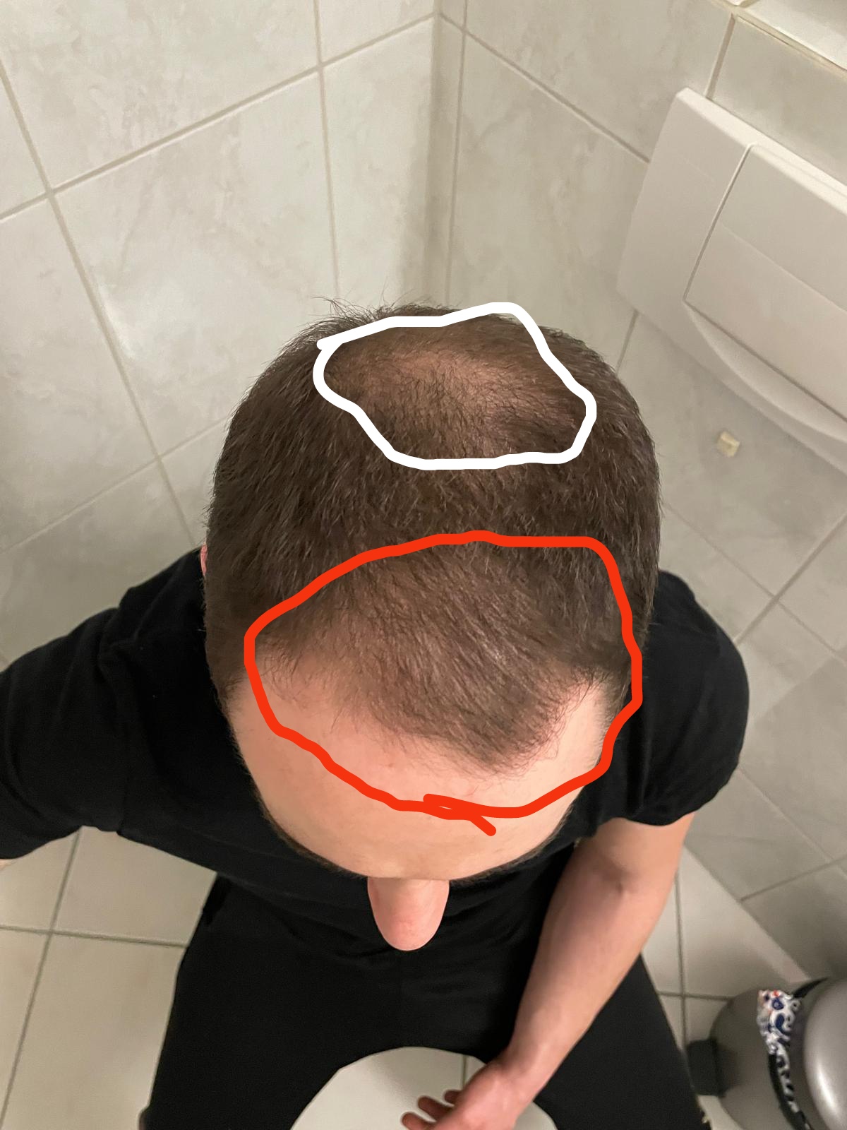 Sende im anhang noch ein bild bei dem ich selbst eingezeichnet habe, rot wird bepflanz, weiss ist das 3/3, tonsur, bei der dr. Heitmann meinte nach aktuellem stand wären dort 1500 - 2000 grafts nötig.