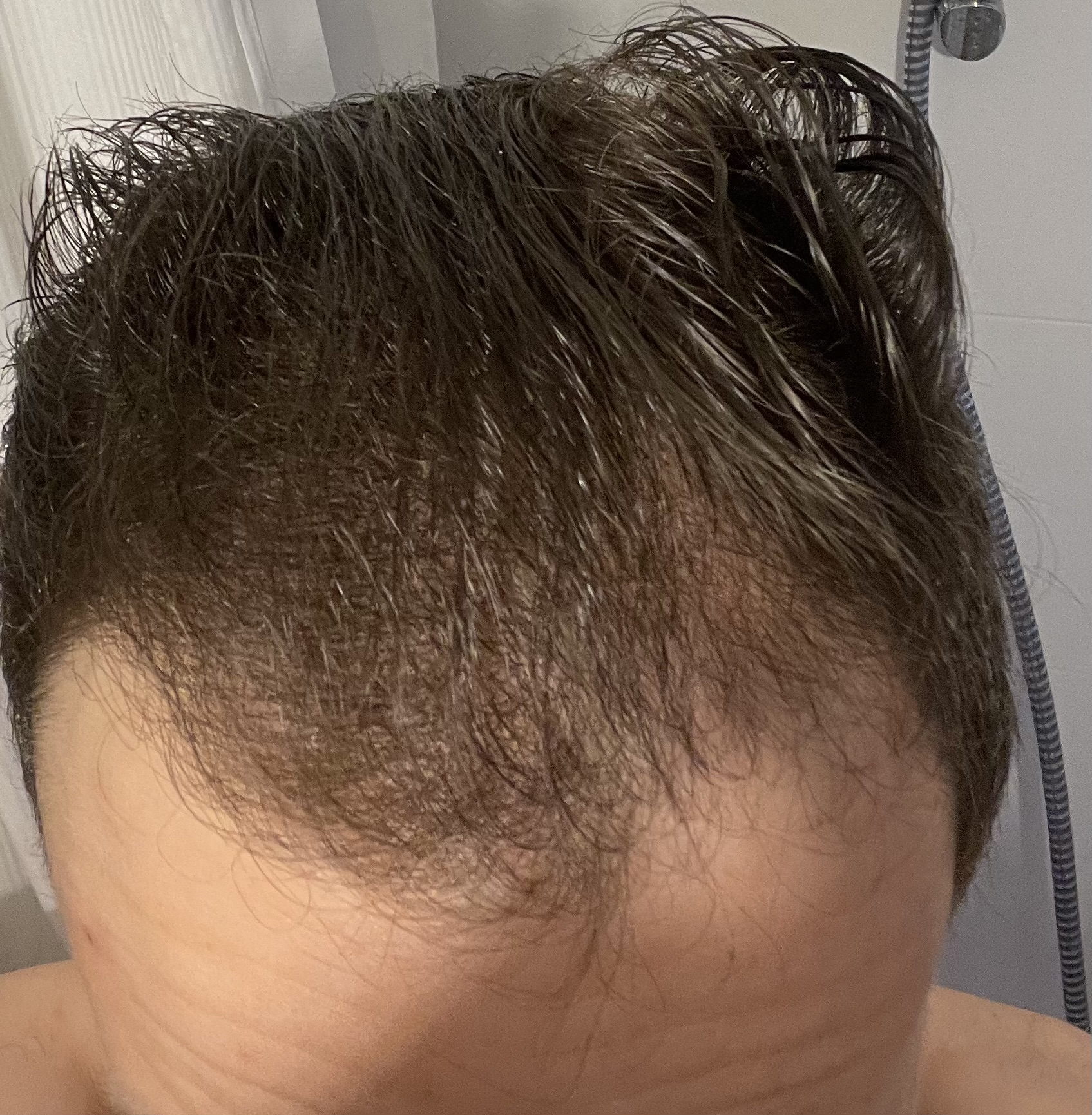 Mein Tonsur ist über die Jahre auch etwas dünner geworden, aber für mich noch in einem akzeptablen Zustand. Auch ohne Produkte sieht der Bereich in trockenen Zustand gut aus finde ich.