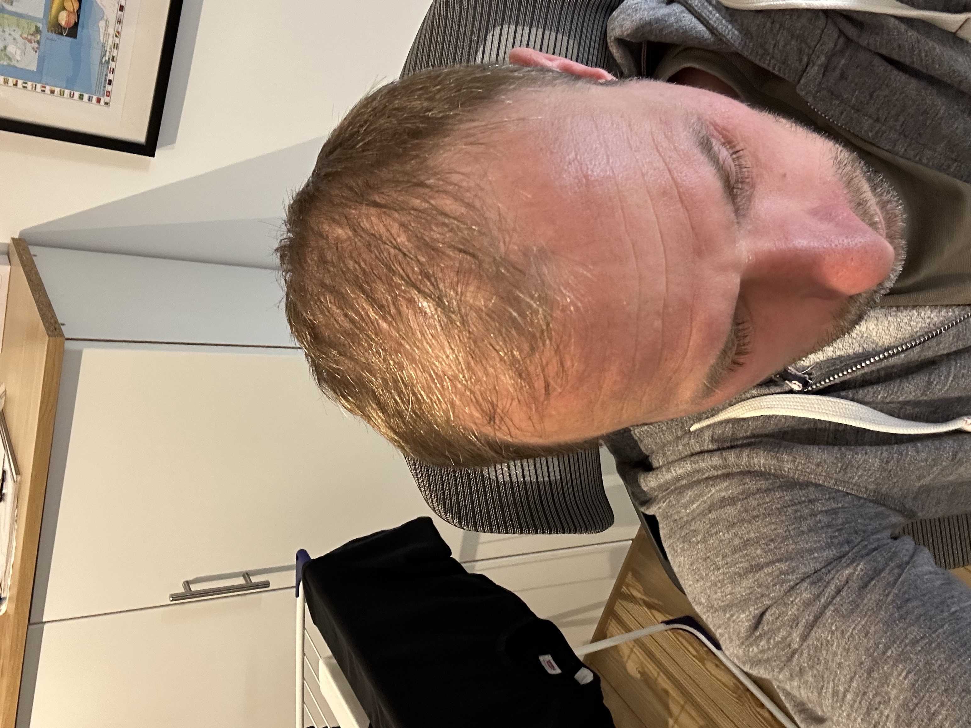 * Aktueller Haarstatus nach der Hamilton-Norwood-Skala: siehe Foto, tue mich schwer mit einer Einschätzung - ich habe recht dünnes Haar auf dem Oberkopf