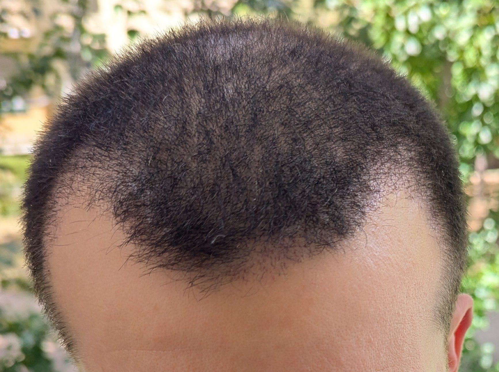 Nach vier Wochen habe ich wieder mit Minoxidil für die Tonsur angefangen. Man merkt und sieht einige kleine Stoppeln, hoffe es geht bald los Smile
