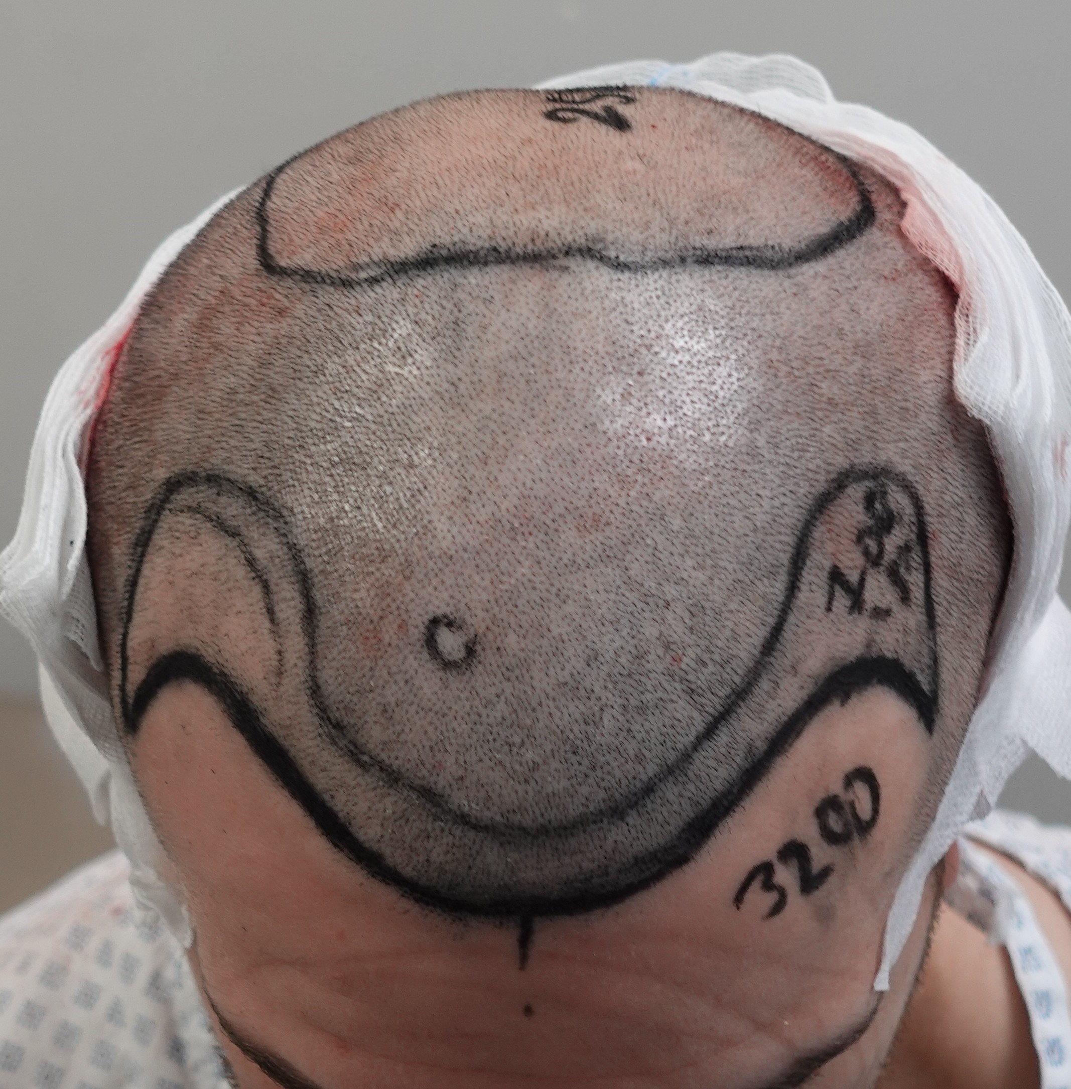 Geplant waren 3000 Grafts, eingesetzt wurden dann 3200 bei der OP.