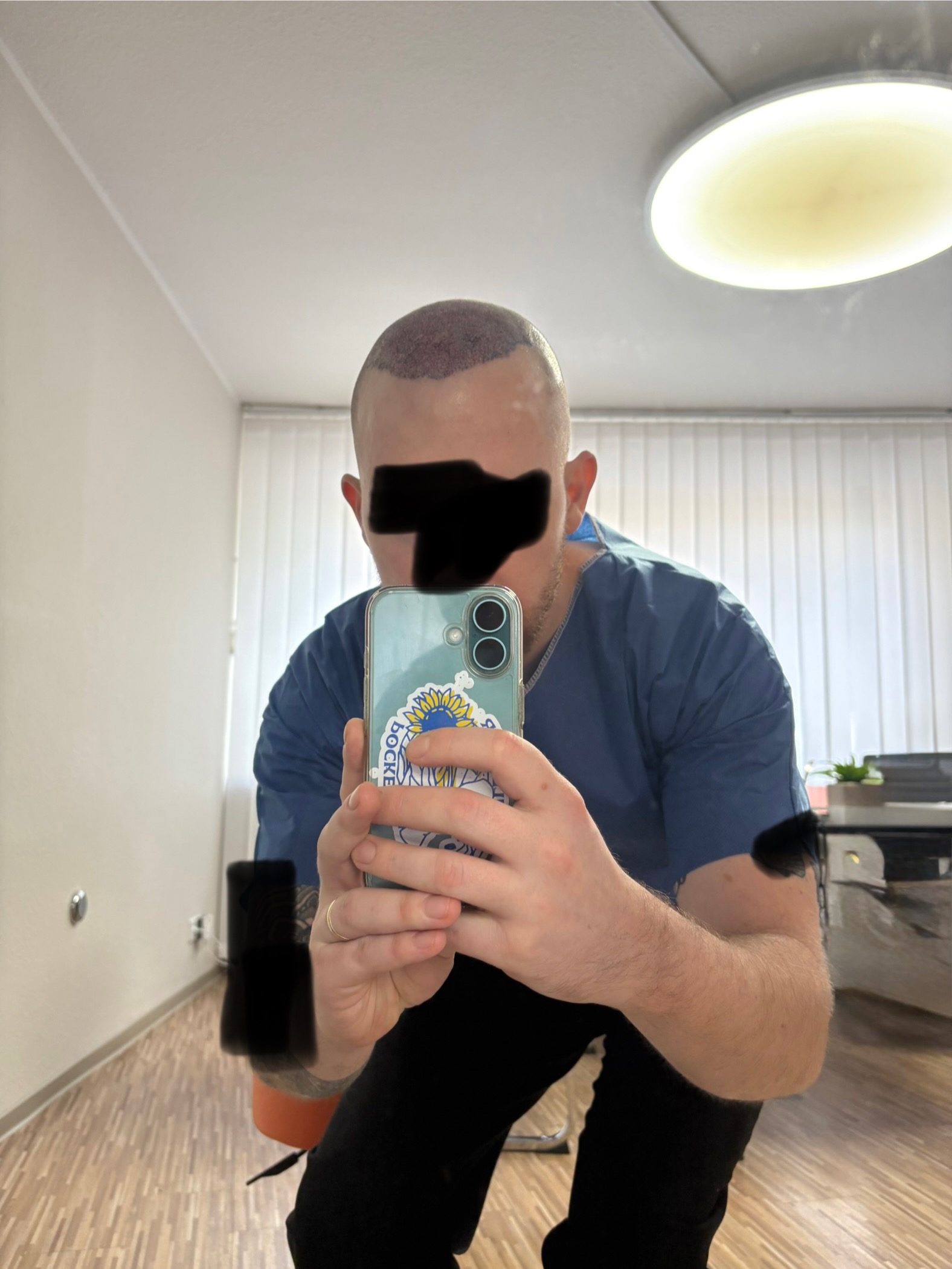 Die Heilung verläuft soweit ich das beurteilen kann (sehr) gut. Viele denken, dass ich lediglich die Haare abrasiert habe und denken überhaupt nicht an eine HT, was durchaus für Ayoubs Können spricht.