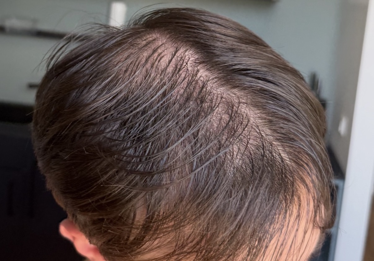 Auf dem Bild sieht es für mich auch eher nach einer diffusen Ausdünnung auf dem Oberkopf aus; diese "Mönchstonsur", wo drumherum noch dickes Terminalhaar wächst, sehe ich bei dir nicht. Die anderen User mögen mich korrigieren, wenn ich zu einseitig sehe.
