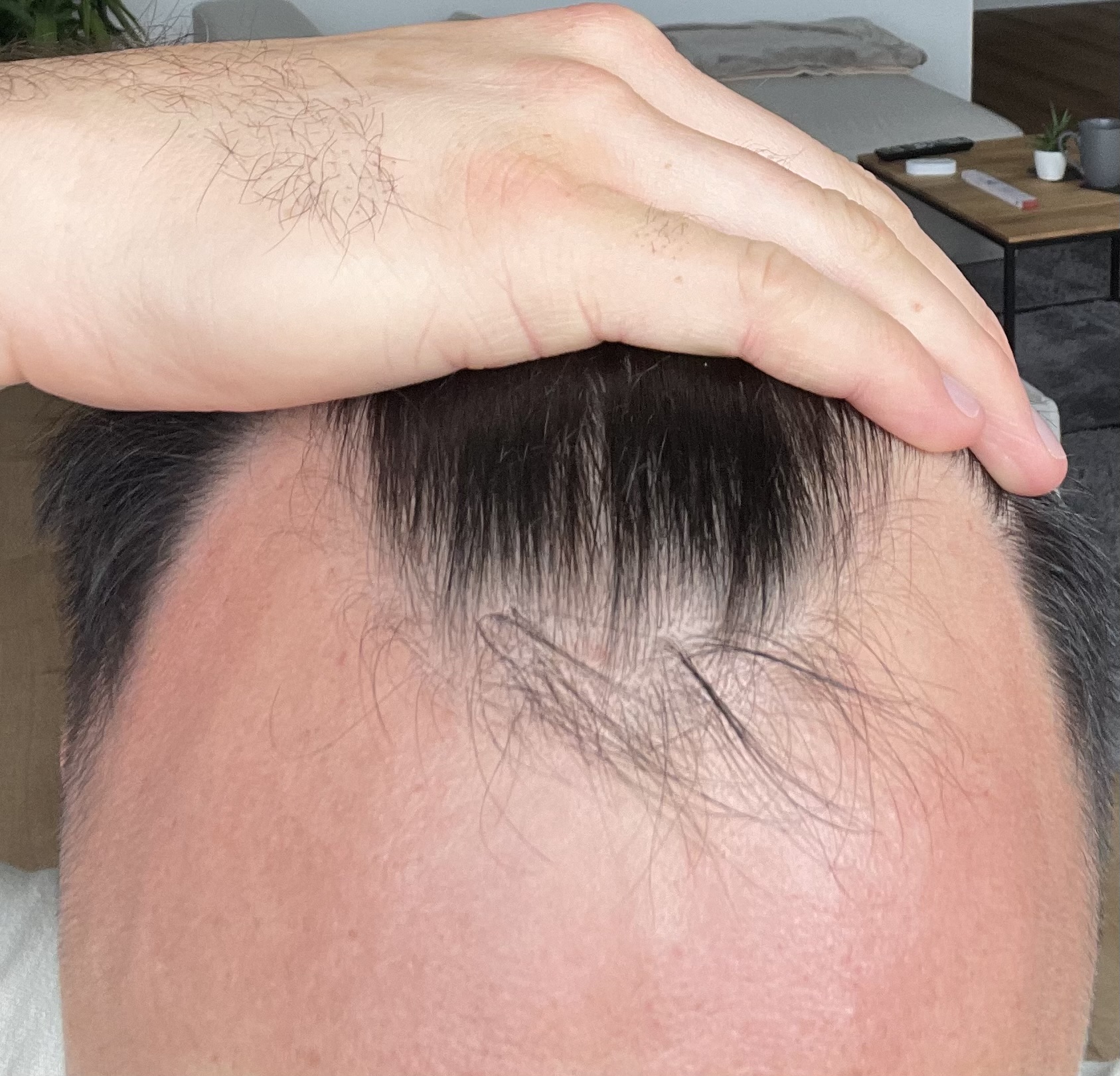 Ich habe Haarausfall, seit ich 16 Jahre alt bin, die letzten Jahre hat sich nur wenig verändert. Vor allem merke ich es an der Tonsur.