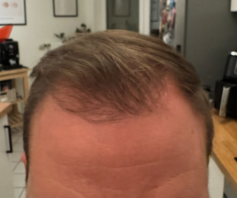 Aktueller Haarstatus nach der Hamilton-Norwood-Skala: vermutlich irgendwas zwischen III oder IIIA