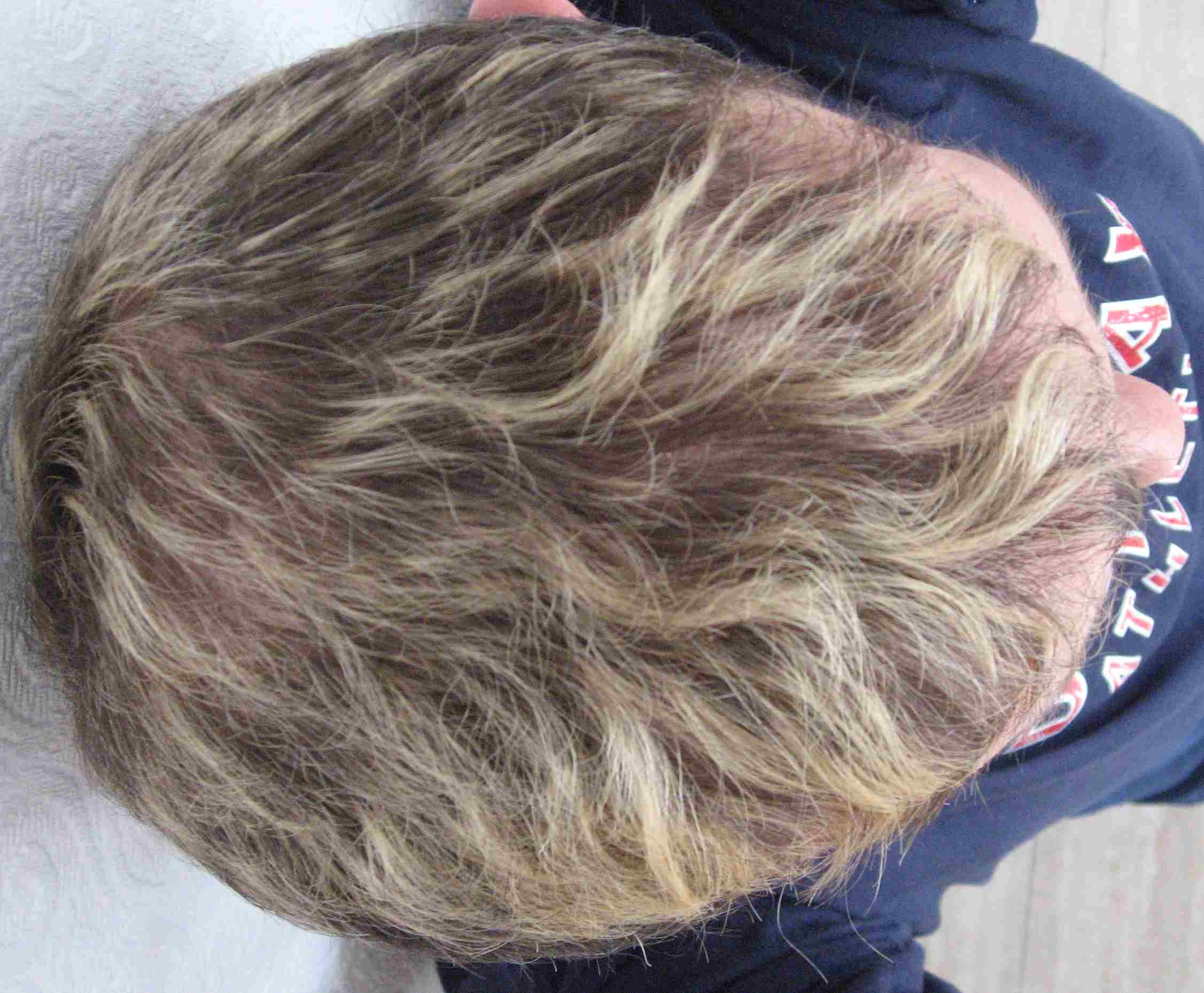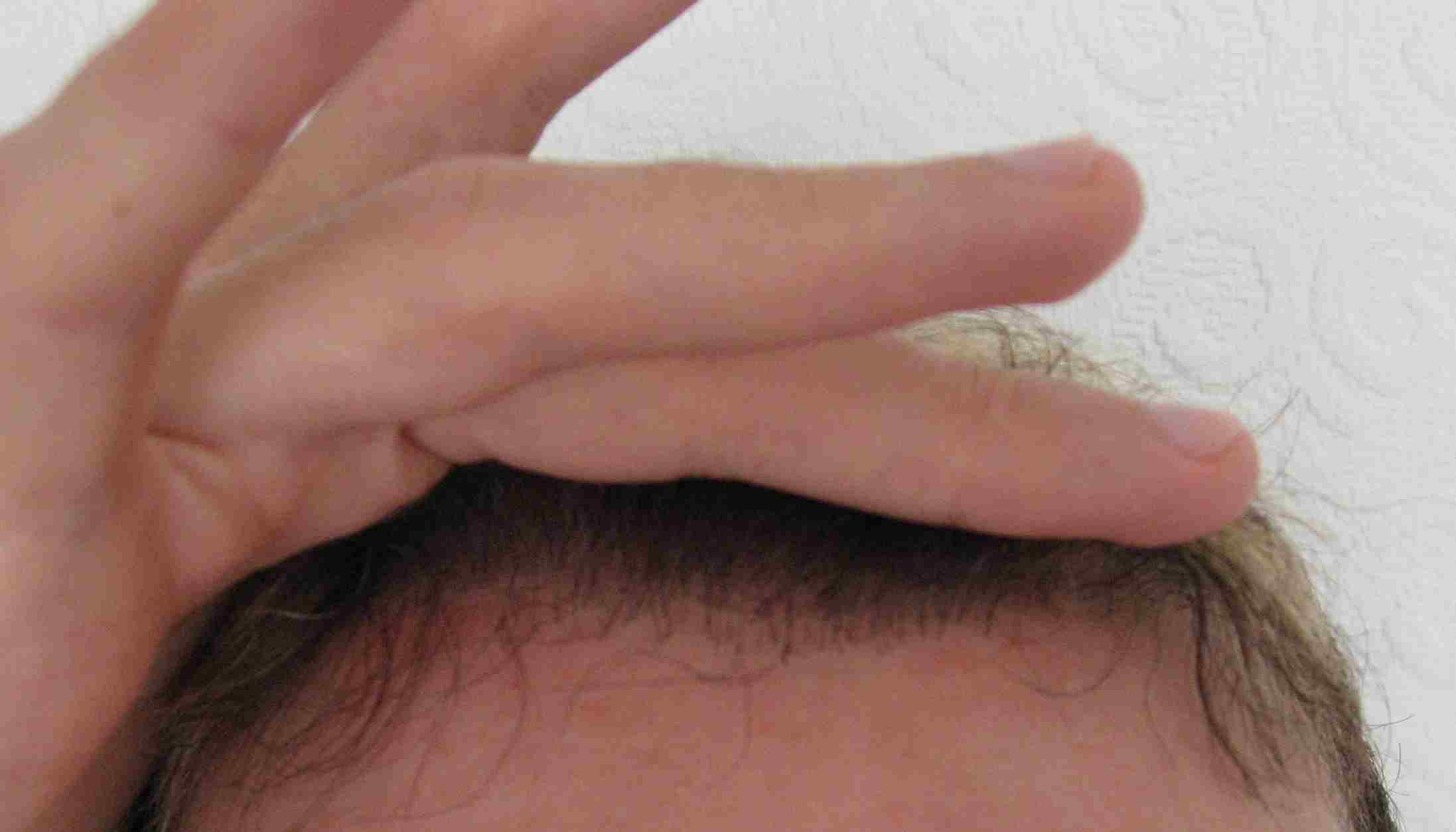 Ich finde dieses Ergebnis (evtl. besser mit nach vorne gekämmten Haaren) immer noch besser, als eine Stirnglatze.
