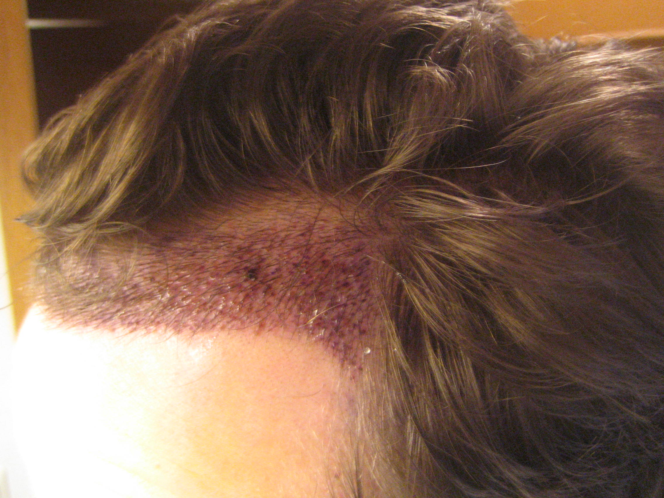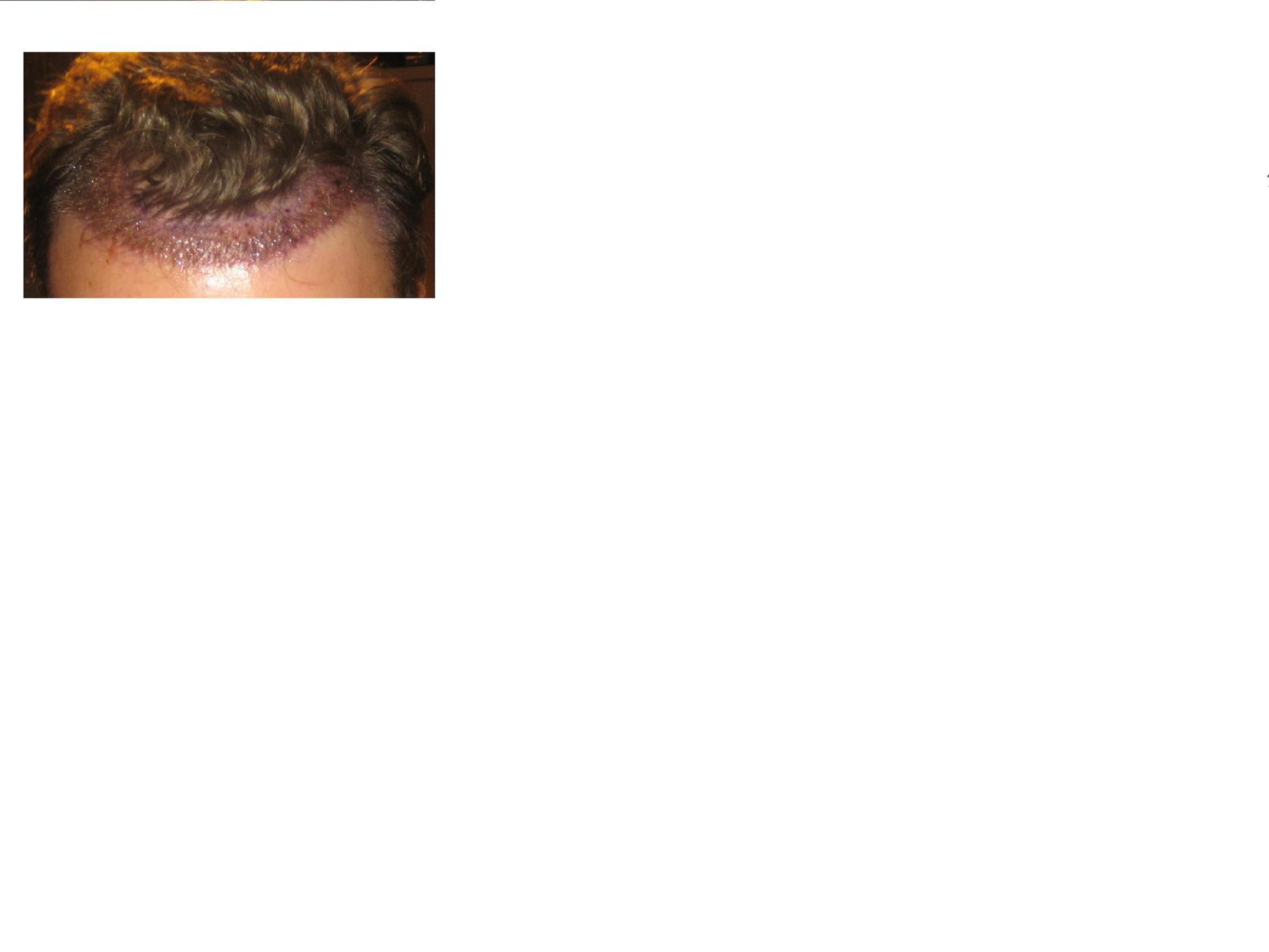 Insgesamt ging man von 1800 Grafts aus. Ich hab mich nicht für die konservative Methode der Narbe entschieden, sondern für zwei seitliche Streifen. Diese haben etwa eine Länge von 8 cm.