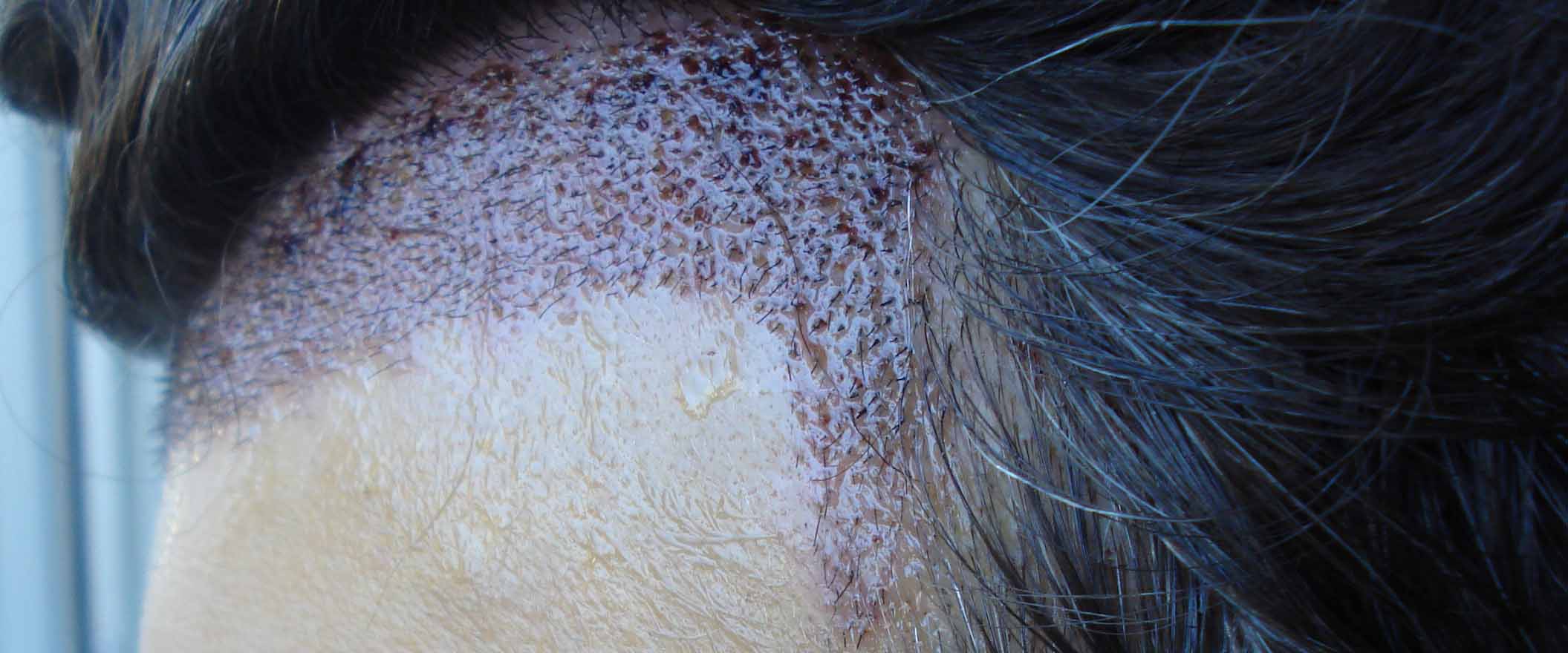 Bei dieser OP wurden aufgrund der höheren Dichte viel mehr Hautverletzungen produziert als bei OP 1 - d.h. es ist potentiell mehr "Angriffsfläche" für das Propylenglykol (der Stoff in Regaine, der hauptsächlich die Hautreizungen verursacht)da.