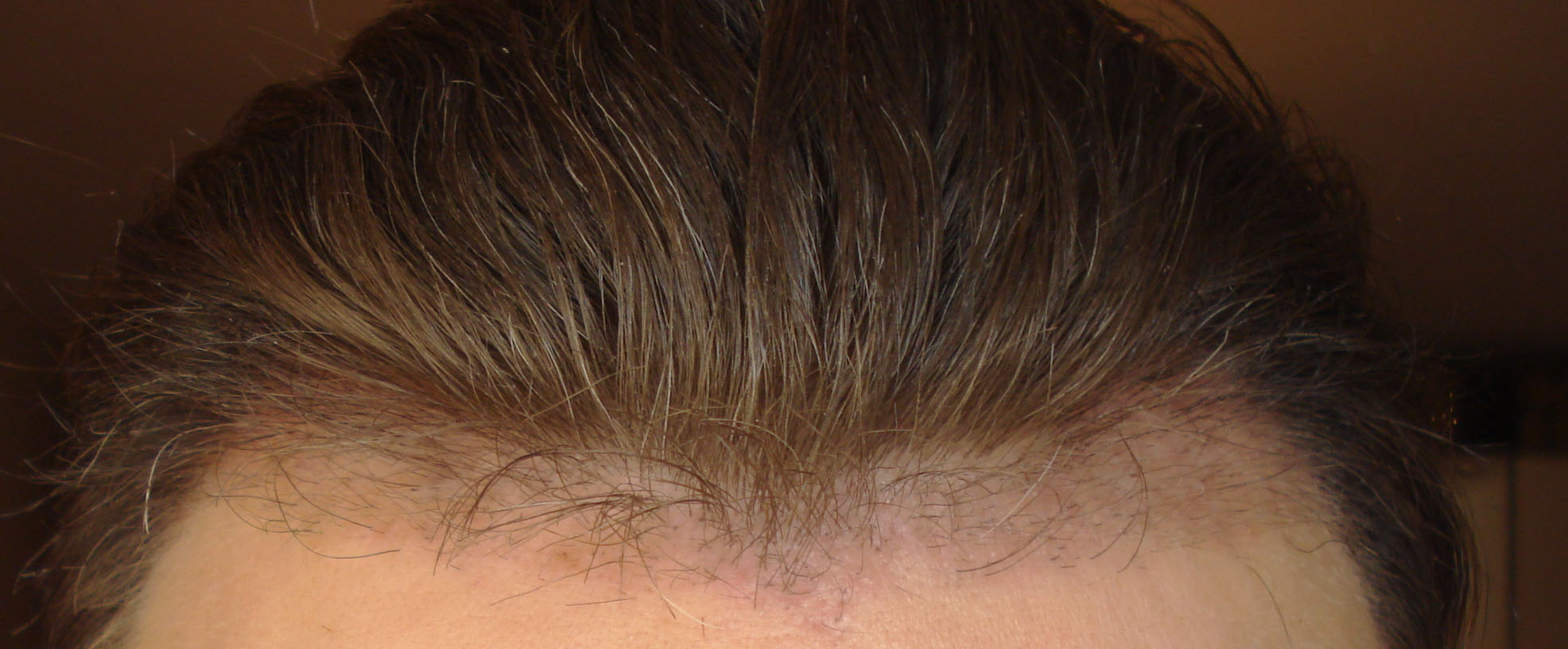 Wie ihr seht, seht ihr nix. So kann ich seit Woche 7 rumlaufen. Für meinen Geschmack etwas lang und zottelig, aber im Winter okay - und die HT entdeckt garantiert keiner. Weil im Zentrum ein bisschen was weitergewachsen ist, sieht die Haarlinie sogar jetzt schon etwas tiefergelegt aus. Bin superhappy.