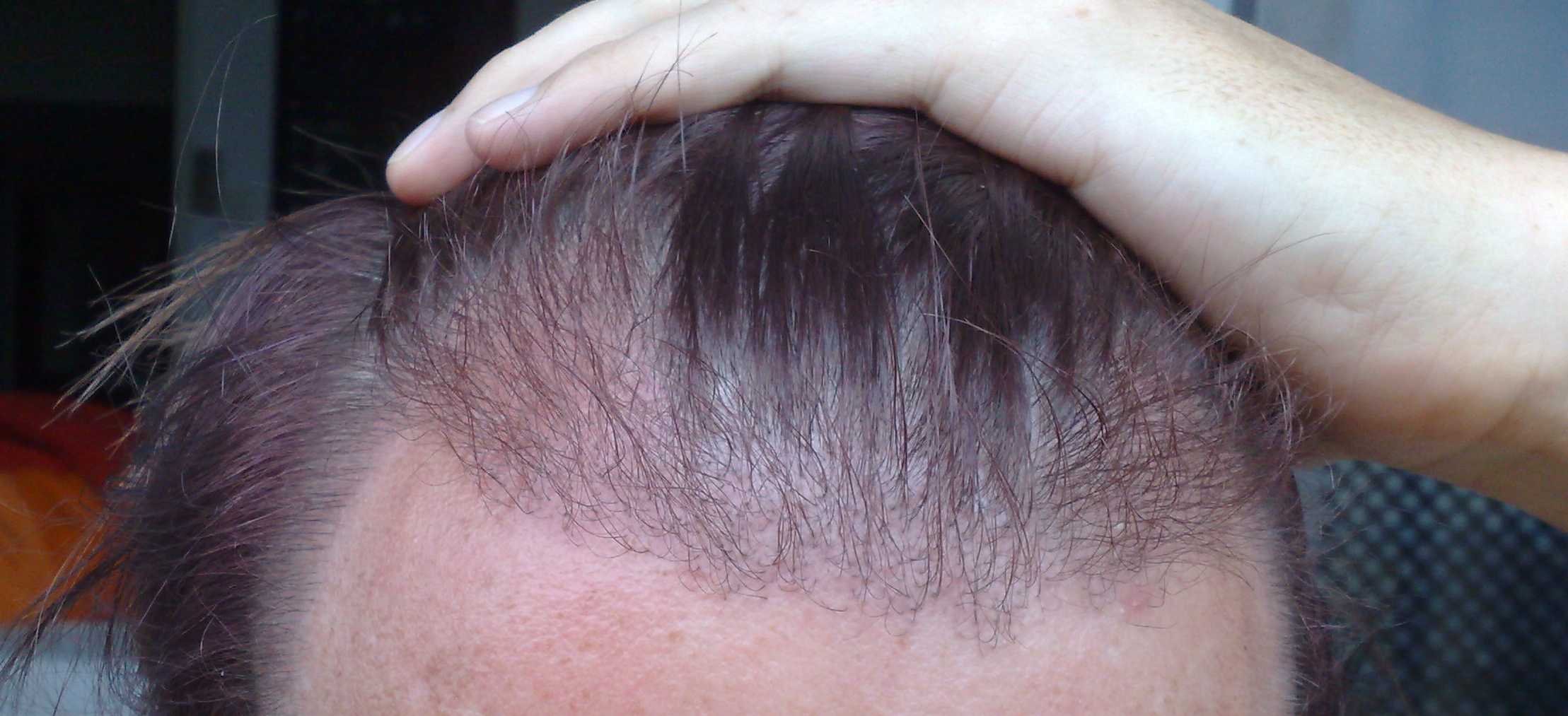 Da ich die Haare normalerweise nach vorne kaemme (nicht so wie auf den Bilder) fallen die neuen Haare auch noch nicht sonderlich auf. Allerdings hoffe ich natuerlich, dass diese bald ihren Dienst tun und das Ganze dichter und voluminoeser erscheinen lassen