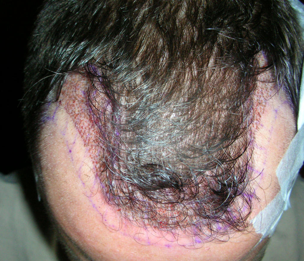 Tag 1 ist vorbei und 790 grafts haben ihren Wohnort ab sofort in die (an den Rändern rasierte) Transitional Zone gewechselt. Wink