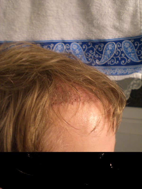 Gleich mal eine Frage zu der Haarlinie von der Seite...hast du die so gewollt? (davon mal abgesehen das ich es meines erachtens zu wenige Grafts auf der Fläche sind!)