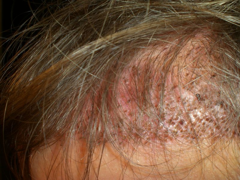 Noch ein Kommentar zu den Bildern, da es zu Missverständnissen kam. Die Nachher-Bilder sind 6 (!) Tage nach der OP. Deswegen haben sich einige Krusten schon wieder gelöst. Vielleicht hätte eher Fotos machen sollen, um deutlicher zu zeigen, wo genau Grafts eingesetzt wurden.
