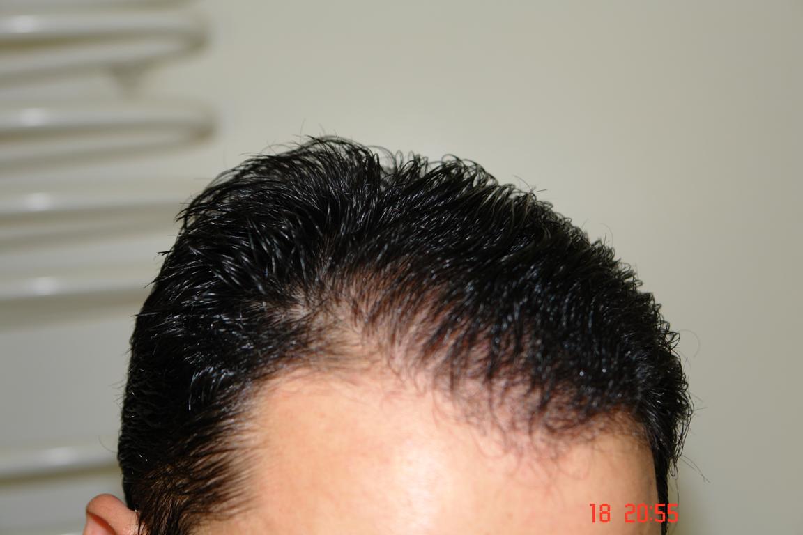 die bilder sind etwa 4 1/2 monate postoperativ. mit dem ergebnis bin ich sehr zufrieden. wenn es noch dichter werden sollte um so besser. etwas kopfzerbrechen macht mir nach wie vor die tonsur. aber für die nächsten drei jahre reicht es noch denke ich.