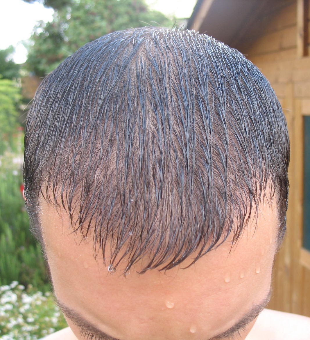 ich war gerade bei meinen eltern und da es so schönes wetter war und die camera gerade griffbereit war dachte ich, mach ich ein paar fotos. ich bin jetzt bei 4 monaten und ein paar tage und bin im grossen und ganzen zufrieden. die von mir aus gesehen linke seite kommt meiner meinung nach ganz gut, in der haarlinie wo es noch in paar löcher hat sind bereits neu spriessende babyhaare zu erkennen. die andere seite hinkt noch ein wenig hinterher, dass war auch die seite wo bei mir die geheimratsecke grösser war, da sind halt schon noch grosse unregelmässigkeiten zu erkennen, vorallem im frontbereich ist es noch recht unschön, aber auch da sind babyhaare zu erkennen.
