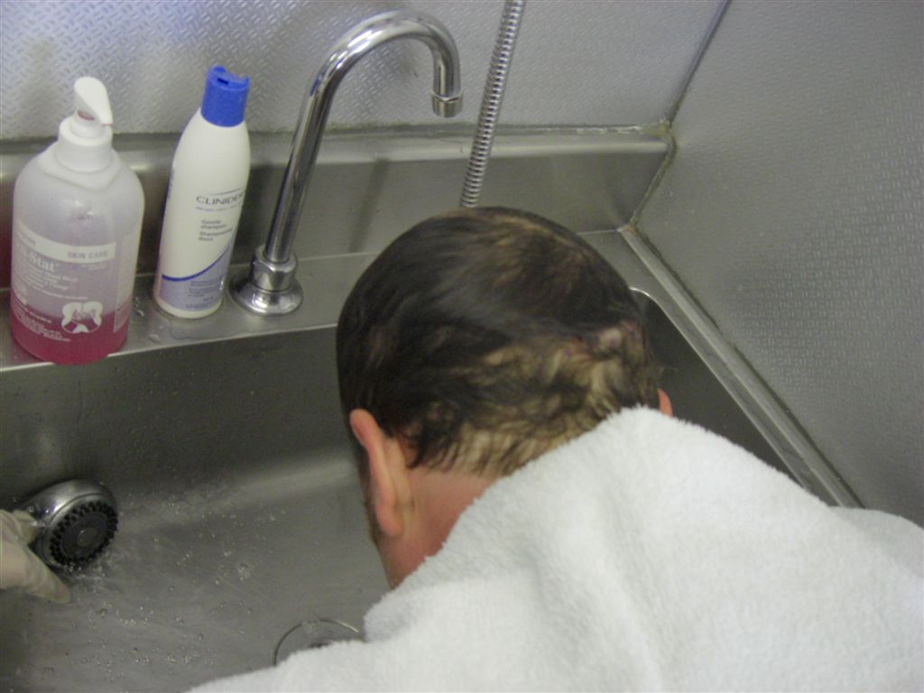 wie versprochen die Bilder unmittelbar post-op und beim Haarewaschen am Tag 1.