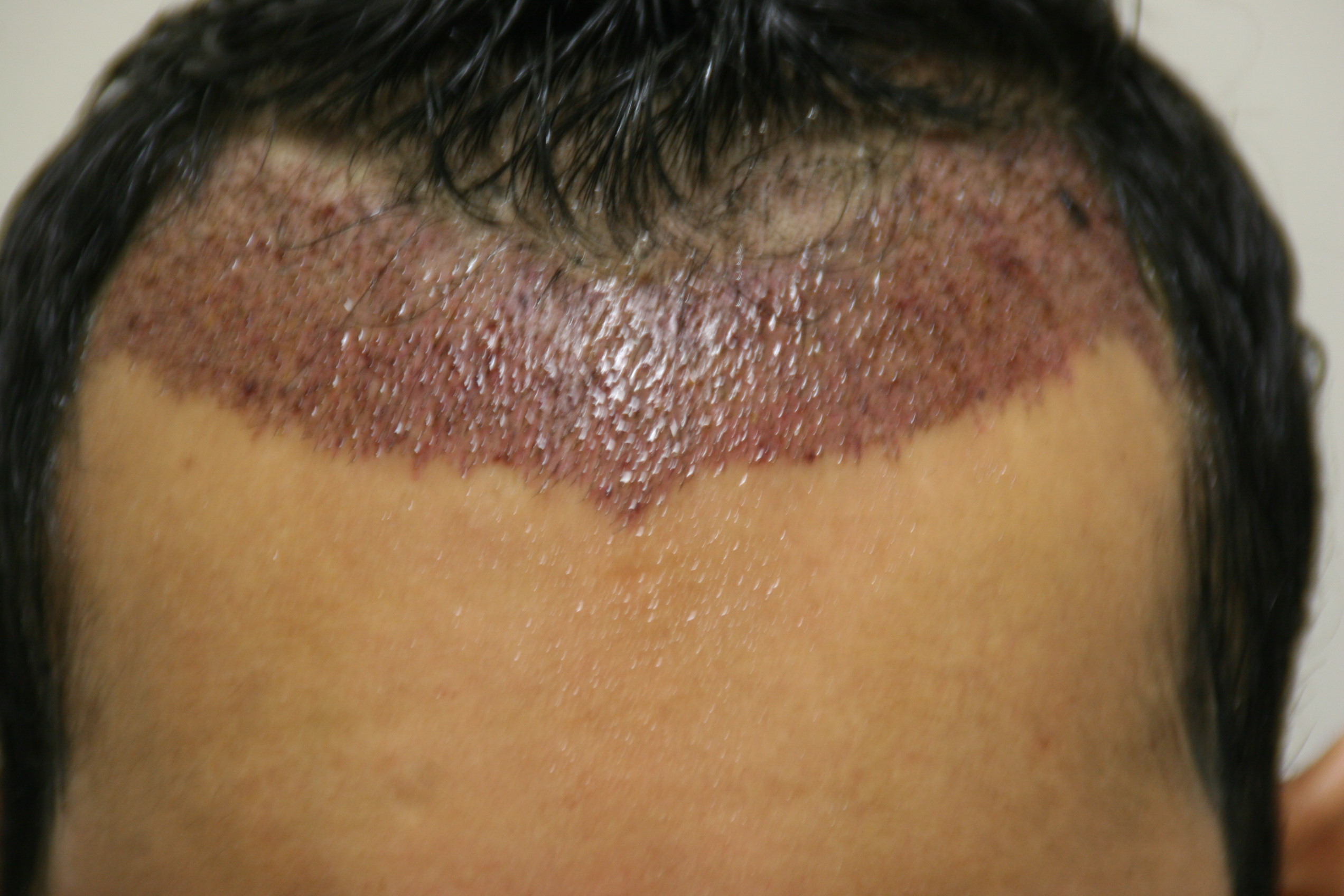 Ach habe ich vergessen zu erwähnen, ich bin 26 und wenn es nach mir gegangen wäre, würden wir noch 3mm weiter runter gegangen sein. Der springende Punkt ist aber, dass ich mit einem lichteren Bereich hinter der Haarlinie und der Tonsur leben kann. Ich muss mir den Kopf nicht überall mit einer 70iger Dichte zupacken. Bin ein dunkler Hauttyp und kann auch mit einer 30-40iger Dichte dahinter leben. So ist der Plan, falls der worstcase eintreten sollte und ob ich jetzt mit der Haarlinie 1-2cm weiter hoch gehe oder mir mit der jetzigen Haarlinie einfach den hinteren Bereich dünner bepflanzen lasse ist doch dann Geschmackssache und ich kann sagen, dass ich auf der Straße auch schon genug Leute gesehen habe, die ihren ganz normalen Haaramsatz haben und dann von der Tonsur ausgehend Haare verlieren (solch ein Muster hat mein Onkel z.B. auch) und das finde ich deutlich deutlich besser als den Haaransatz irgendwo bei centimeter 8 der Stirn. Letztlich geht mein Worstcase auch nur maximal bis NW4-5 in meiner Familie und auf den Bildern hier muss du berücksichtigen, dass sicherlich 1cm und noch ein bischen mehr der bestehenden Haare abrasiert wurde und ich in den restlichen Haaren ca. 5 Liter VitaminE öl aus Versehen gekippt habe; dagegen ist wetgel das reinste concelar. Also, so ist mein Plan und ich muss dir ehrlich sagen, ich finde ihn ziemlich gut.