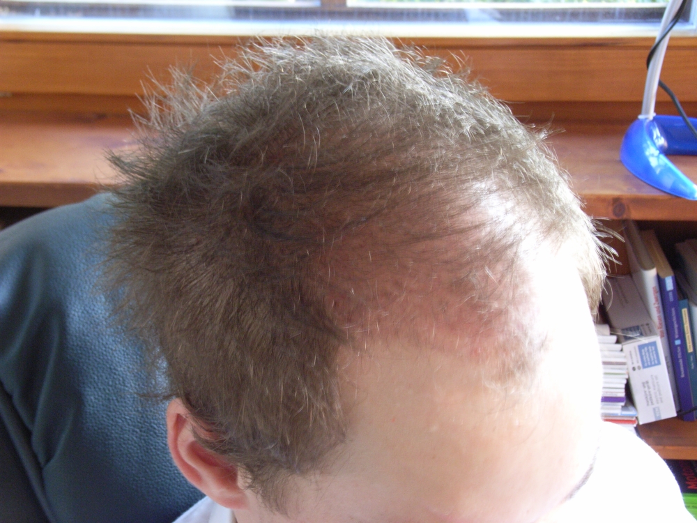 ich hab gerade mal nochmal meine haare gestylt. das ist ein unterschied wie tag und nacht. vor allem vom feeling her. wenn ich die haare ungestylt lasse, wie beispielsweise auf den fotos 3 monate 1 woche post-op, dann fühl ich mich scheisse. irgendwie alt und unattraktiv. aber gestylt sieht es viel besser aus und fühlt sich auch viel besser an. die haare scheinen so langsam besser zu werden. es nähert sich so langsam dem pre-op-status an.