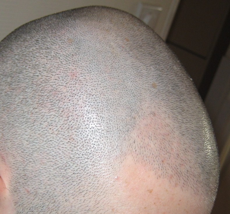 Die jetzigen Bilder sind von heute ca 2,5 Monate post op und eins ca. 2 Tage nach der letzten sitzung ( hatte 4 ingesamt jeweils 500 grafts) das 6-tage-post-op Bild is qualitativ nicht so der Hit habe aber vorhin ne e-mail an den Dolemtscher von Dr.Keser gesendet und ihn gebeten mit die OP Bilder zu schicken.