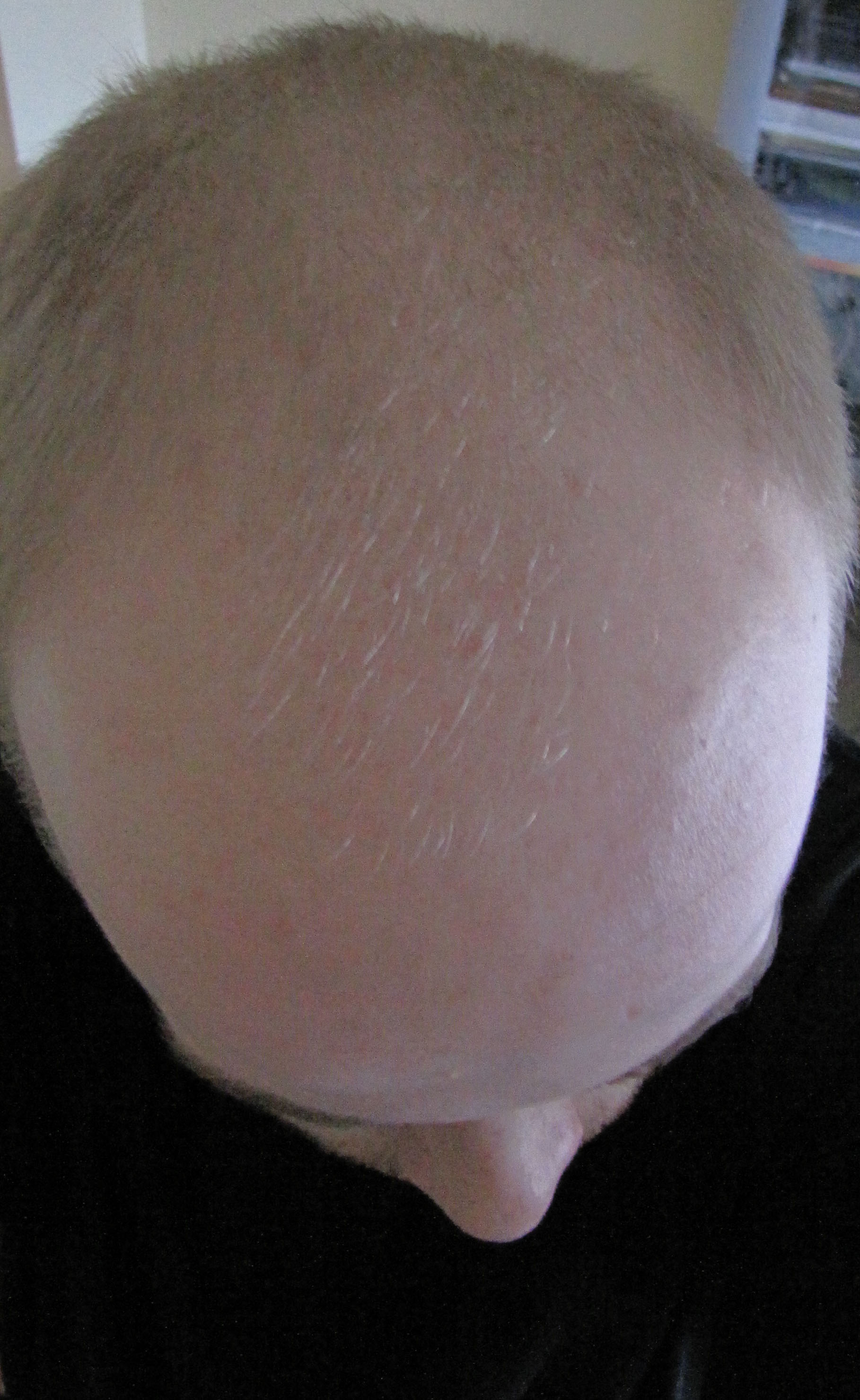 Mittlerweile bin ich die Sache aber leid, Ewigkeiten im Bad zu verbringen um zu kaschieren, nur um das Später jeden suboptimalen Lichteinfall zu vermeiden oder immer mit ner Kopfbedeckung rum zu laufen. Ich werde mich demnächst meine Haarte sehr kurz bzw. wenns schlecht aussieht ganz einfach komplett abscheiden.