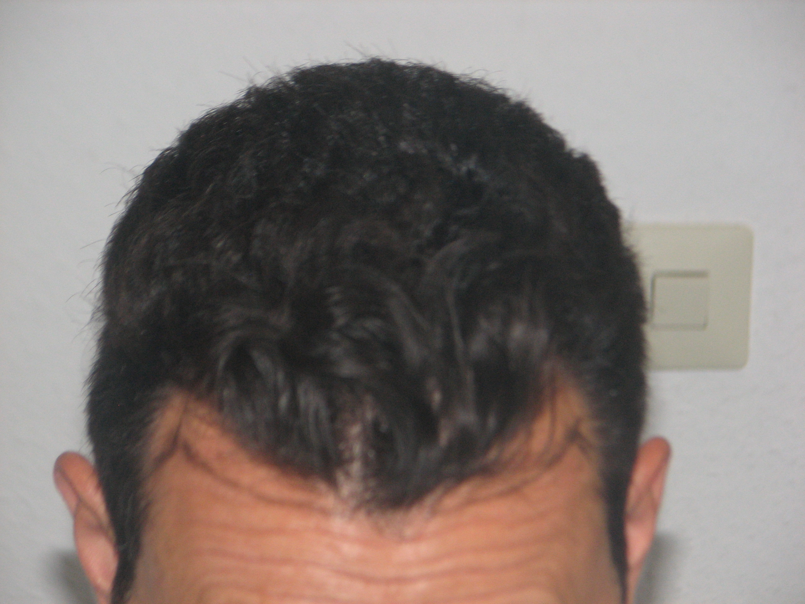 Als ich gestern gegen 23 Uhr fertig wurde, begab ich mich nach den Post-OP Anweisungen in ein Restaurant und dann ins Bett. Am nächsten Tag störte mich in der Haarlinie ein neben meinem Mittelpeak auf meiner rechten Seite befindliches nach unten gesetztes Dreieck. Ich bin dann- wie ohnehin zum Haarewaschen vereinbart - zur Praxis gelaufen und habe ihn darauf angesprochen. Ohne Probleme hat er mir einfach eine Spritze gegeben und die Grafts umverteilt. Hat nicht mehr als 20 Minuten gedauert und hat er durchgeführt, obwohl er noch einen (im Vorbereitungsraum sitzenden) Patienten hatte.