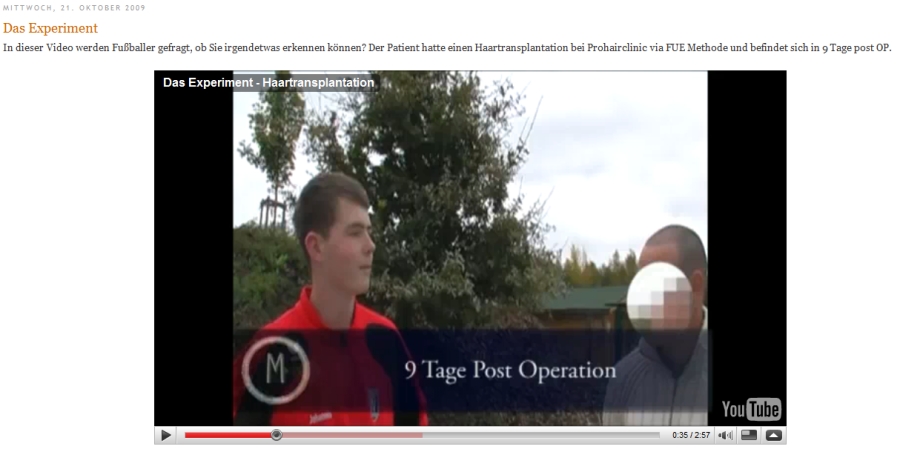Re: Video: Das Experiment - Sieht man nach 9 Tage Post OP eine FUE OP? Fußballer gefragt.. [Beitrag #43646 ist eine Antwort auf Beitrag #43641] :: Do., 22 Oktober 2009 11:33
