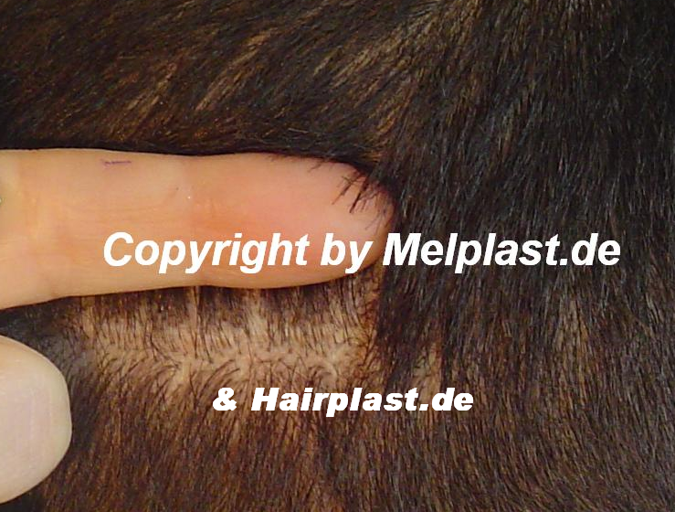 "Bei der Streifenentnahme- Methode kann es, wie bei jedem chirurgischen Eingriff, an der Haut zur Bildung einer sehr schmalen (bis zu 0,2 mm), optisch kaum sichtbarer Narbe kommen, welche durch das umliegende Haar aber verdeckt wird.