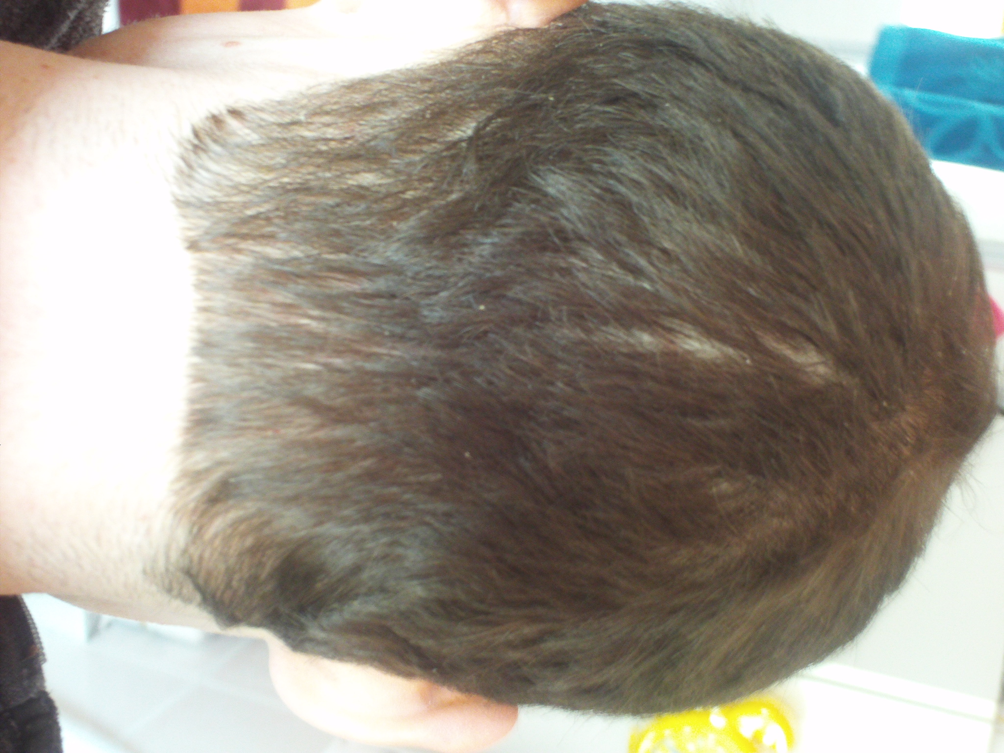 Diese Methode sollte ledeglich zusätzlich zur Diagnostik berücksichtigt werden. Also da ich kein Blutwert über Selen habe, habe ich das Selen wegelassen. Die 4 kleinen (fast, mit Stummelhaaren wie abrasiert) haarlosen Kreise sind ein wenig kleiner als ne 1 cent Münze.