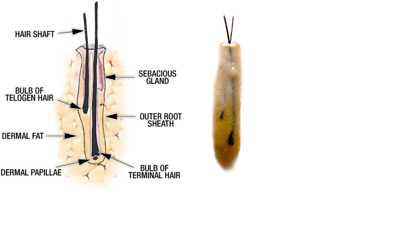 Die Follikuläre Einheit ist eine komplexe Struktur. Sie sollte möglichst INTAKT transplantiert werden um höchste Anwuchsraten zu gewährleisten. Präzision und Exactität sind höchste Priorität bei einer Haarverpflanzung.