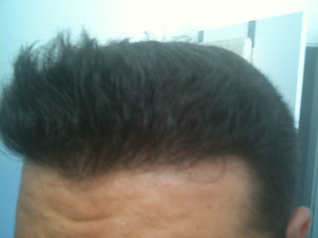 Habe heute zwei Fotos angefertigt (13 Monate post op). Nicht schrecken. Mag vielleicht am Ansatz ein bisschen dünn aussehen, aber das täuscht. Die Haare sind gerade im Ansatzbereich ultra dicht. Die Fotos habe ich im Bad und starkem Halogenlicht angefertigt.