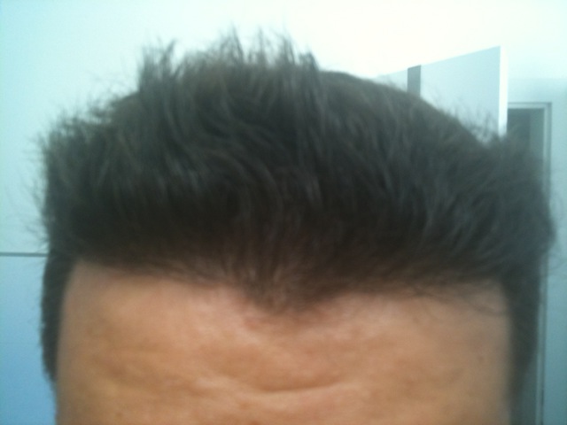 Habe heute zwei Fotos angefertigt (13 Monate post op). Nicht schrecken. Mag vielleicht am Ansatz ein bisschen dünn aussehen, aber das täuscht. Die Haare sind gerade im Ansatzbereich ultra dicht. Die Fotos habe ich im Bad und starkem Halogenlicht angefertigt.