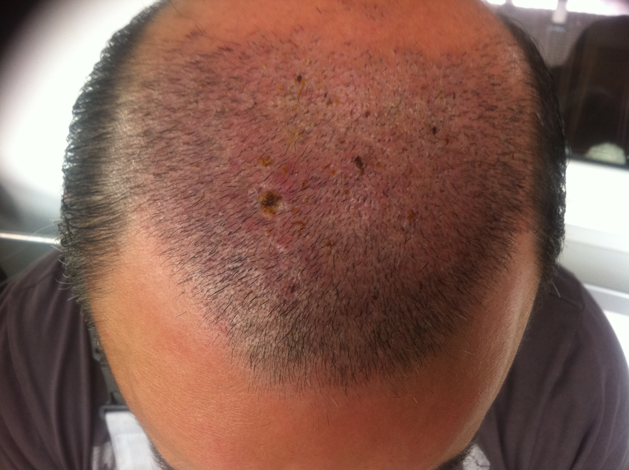 Kurzer Status: Das Körperhaar was verpflanzt wurde wächst problemlos an. Shockloss konnte ich bisher nicht feststellen. An meiner Brust bilden sich vereinzelnt Pickeln aber im groß und ganzen sieht es bisher gut aus. Die Einstiche sieht man zwar, aber es ist nicht so das es mich stört. Und ah ja mit 0.8 mm punch wurde die entnahme durchgeführt. hab sogar nen kurzen video bei meiner entnahme drehen lassen.