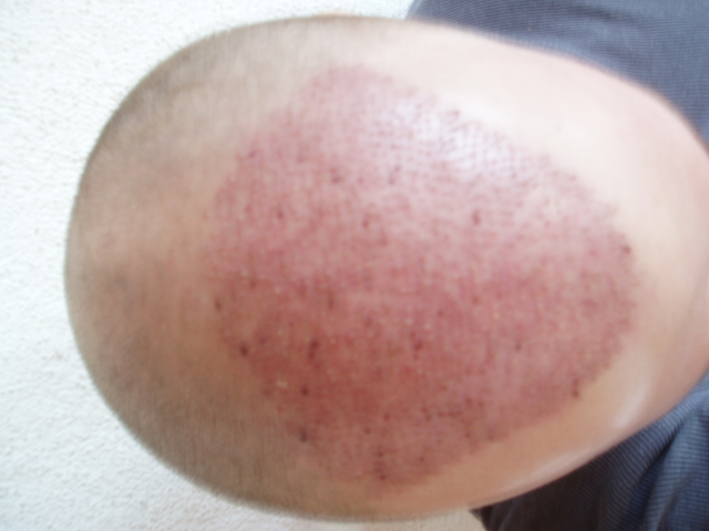 bin immer noch überzeugt das meine behandelnde Ärtzte gute arbeit geleistet haben ,extraction im donor bereich sehr sporadich ,und wenns so weitergeht in 3 tagen (1mm pünktchen)nicht mehr zu erkennen, also keine narbe ,könnte evtl. 3mm frisur tragen ,ohne das man etwas merkt,die technik der einpflanzung für mich total überzeugend,
