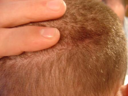 Narbe habe ich beim letzten update gezeigt da tut sich nix besonderes mehr, ab 0,6mm Haarlänge sieht man nix mehr.