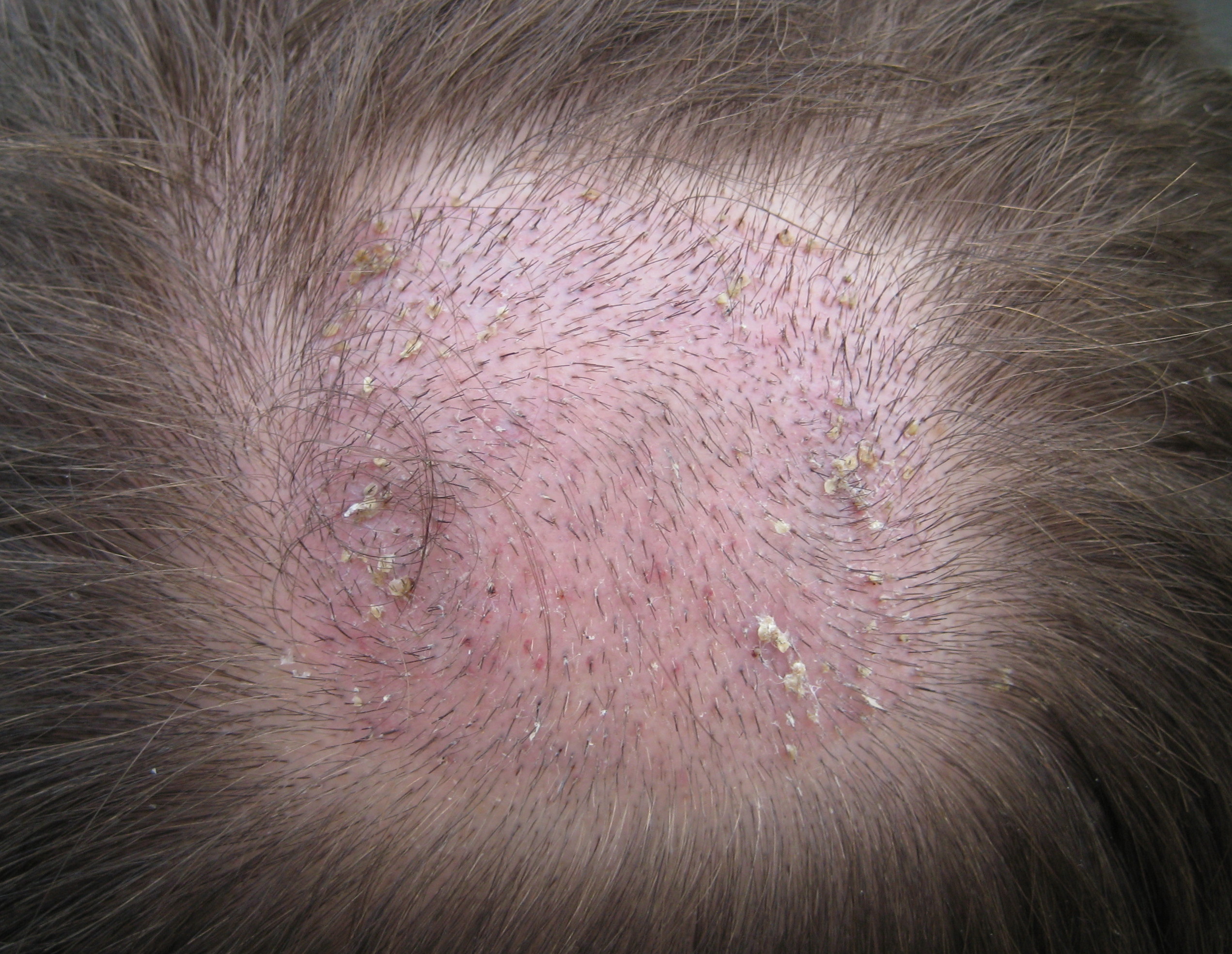 Ich hatte in der Front eine Fläche von ca.60 cm2 und in der Tonsur eine Fläche von ca. 20 cm2 die zu behandeln waren.