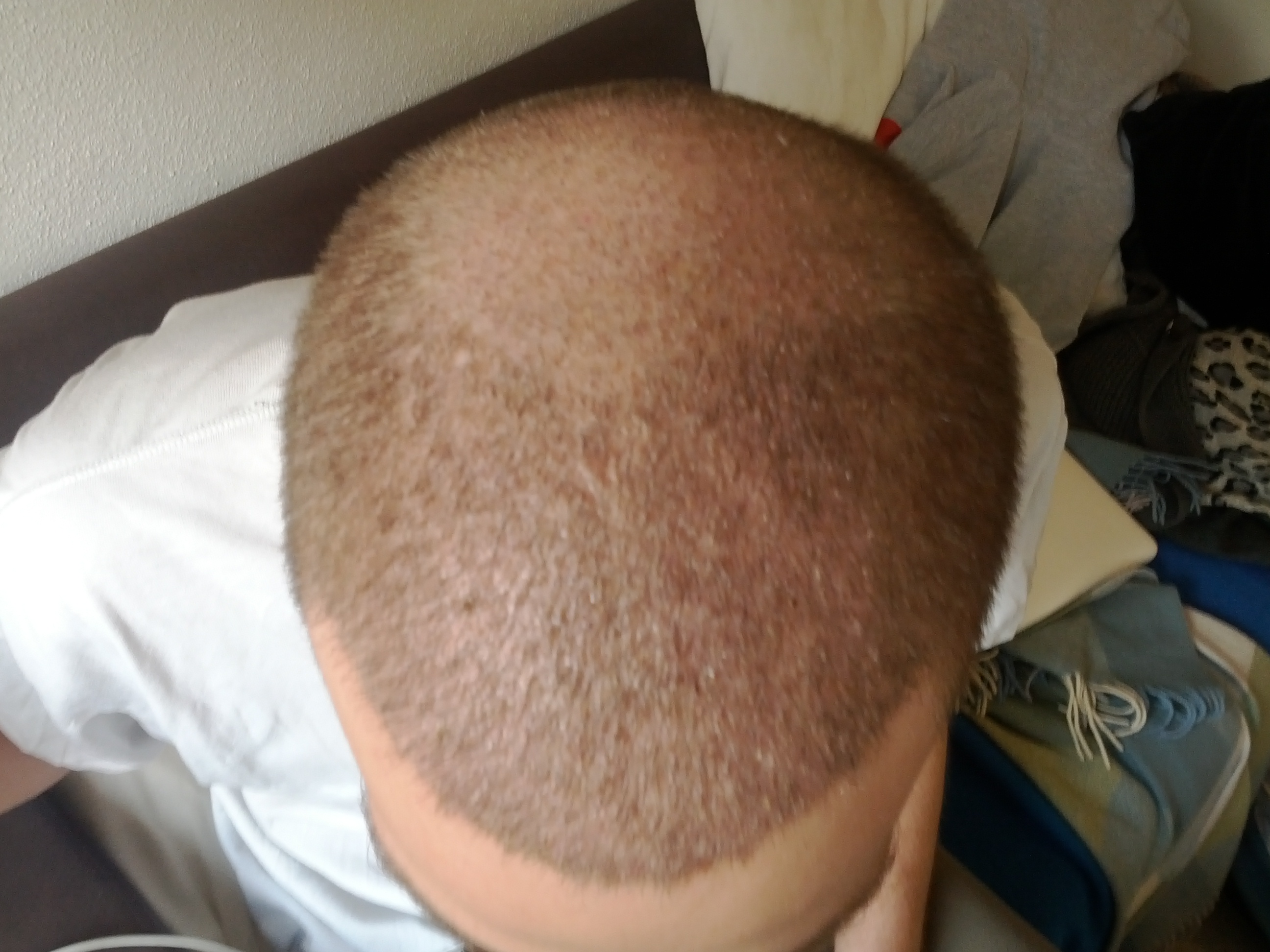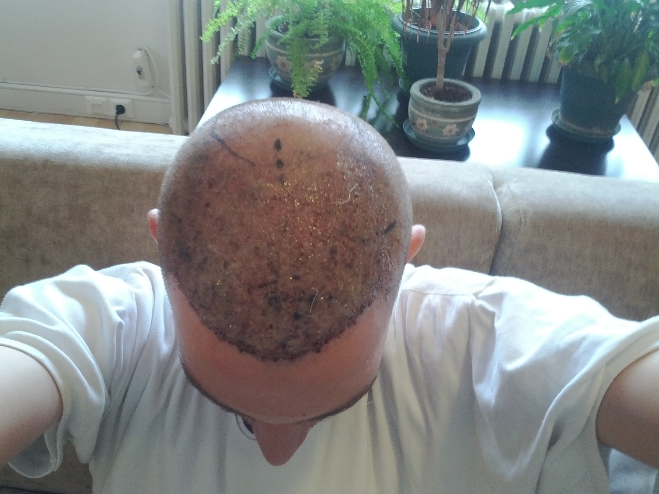 Scheint so als sind doch nicht alle Transplantate ausgefallen, denke dass das ein gutes Ergebnis werden könnte, hast du noch Bilder vom entnahmebereich wie das jetzt so aussieht?