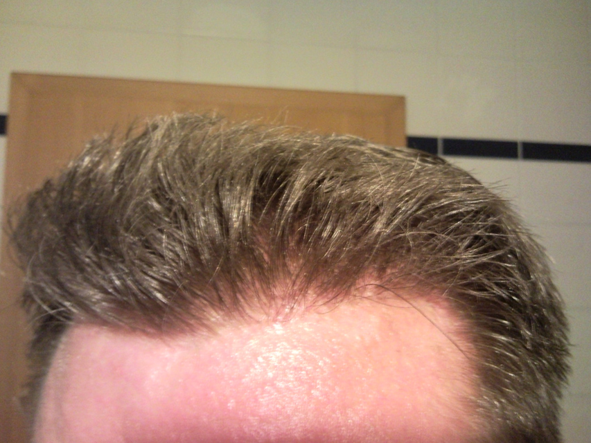 Nach der ersten Sitzung war die Anwuchsrate recht schlecht und ungenügend. Dies war wohl hauptsächlich meiner 'follicular keratosis' auf der Kopfhaut zuzurechnen, ich vertrage im Prinzip offenbar kein 'dense packing' (!), dabei knickt mir die Anwuchsrate erheblich ein. Die Alternative war eine Folge von kleineren Sitzungen ohne 'dense packing', wo sukzessive verdichtet wurde und das Trauma für die Kopfhaut jeweils minimal gehalten wurde. Dies führte dann auch tatsächlich zu einem akzeptablen Fortschritt. Für die 'follicular keratosis' auf der Kopfhaut wende ich u.a. regelmäßig folgendes kortisonhaltige Medikament auf der Kopfhaut an, was auch dem Wachstum der Haare recht gut tut.