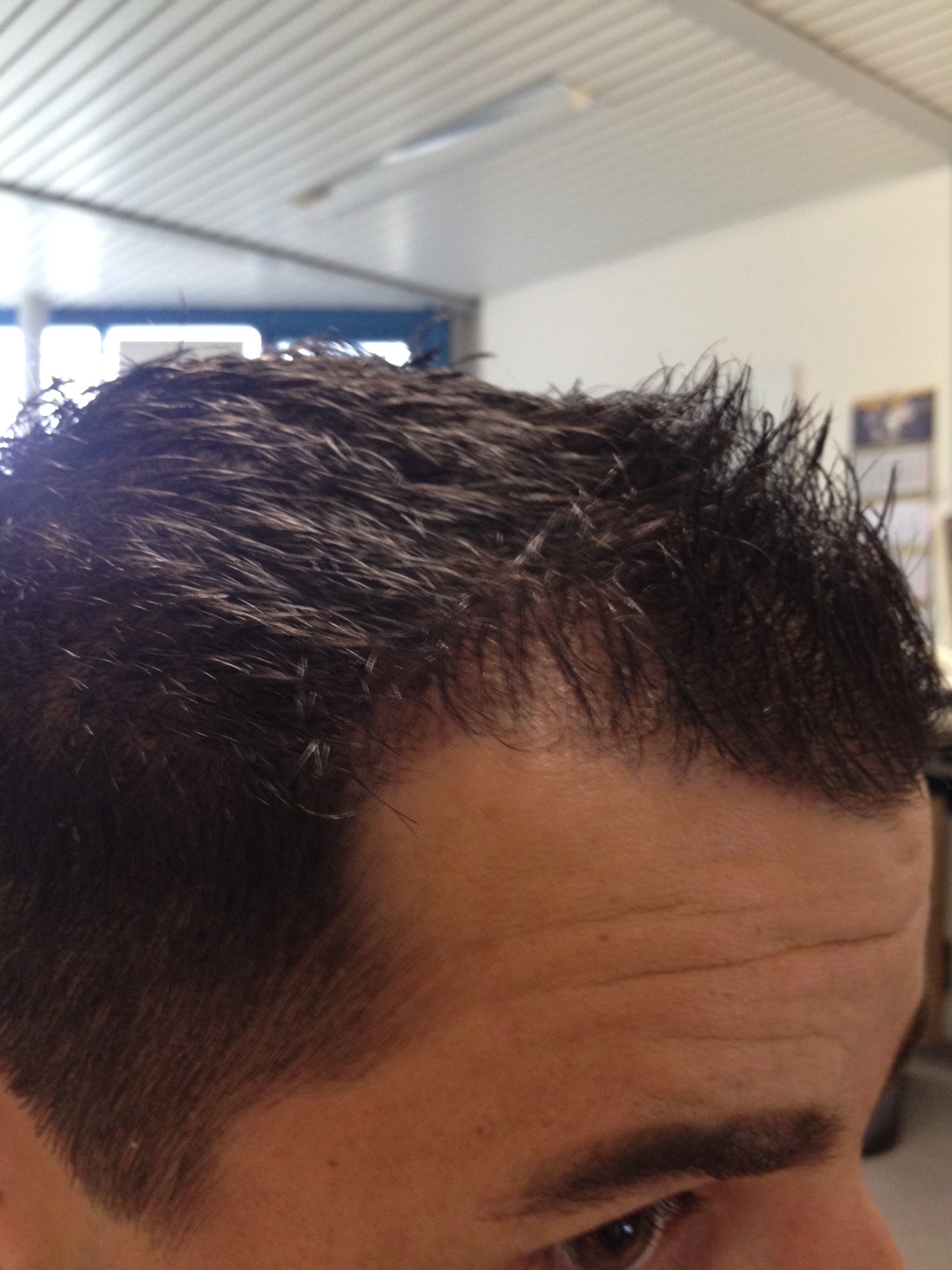 vielleicht noch ein Bild von Oben, da sieht man einfach das es am mittel/hinterkopf dichter ist. Wobei es auch klar ist, dass die reale Dichte nie erreicht wird.....