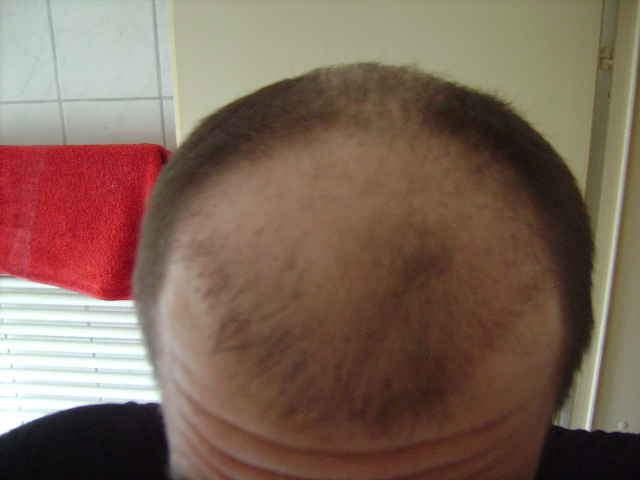 Dazwischen meist ziemlich kahl....man sieht stellenweise nicht einmal einen Ansatz von einem Haar....