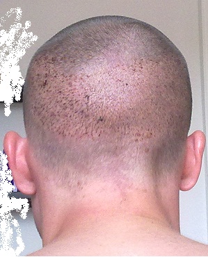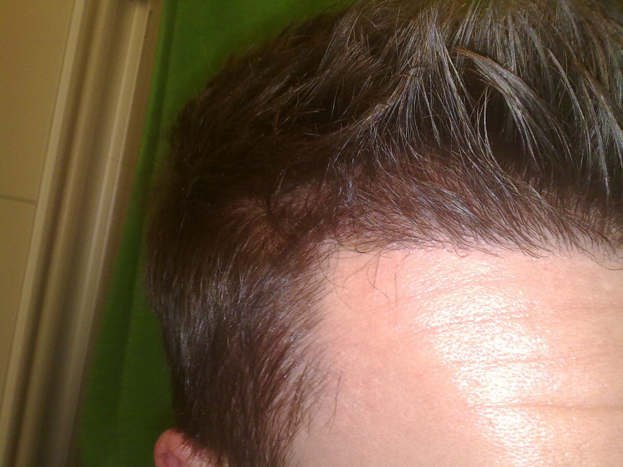 bin nun 13 wochen Post OP. Hat sich schon einiges getan. Nach 3 Wochen waren bei mir bereits 90% der Haare ausgefallen. Danach war die Zeit äußerst bescheiden. Die übrig gebliebenen 10% habe ich alle 2 Tage mit der Nagelschere oder dem Nassrasierer gekürzt, da es echt bescheiden aussah wenn ich sie habe wachsen lassen. Die ursprünglichen Haare habe ich bisher nicht angerührt und einfach wachsen lassen. So kann ich jetzt 13 Wochen Post OP die transplantierten Stellen einigermaßen kaschieren. Der Neuwuchs ist noch etwas dünn und die transplantierten Haare sind natürlich durch das ständige kürzen (inzwischen lass ich alle Haare einfach wachsen) deutlich kürzer als die ursprünglichen Haare. Die beiden Fotos die ich nun präsentiere sind eher spontan entstanden. Ich habe ein bisschen Wax in den Haaren. Die Fotos sind mit Blitz fotografiert. Bei Gelegenheit gibts dann auch mal bessere Fotos. Aber nach 3 Monaten lässt sich eh noch nicht soviel sagen.... Jetzt heißt es weiter abwarten.