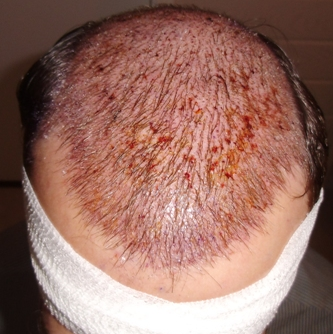Eigentlich sollten nur 4500 Follikuläre Einheiten transplantiert werden. Aufgrund der guten Spenderzone konnten 5.000 Grafts transplantiert werden. Die 10stündige OP verlief einwandfrei. Nach dem Mittagessen habe ich mir 2 Filme angeschaut und die OP kaum noch wahrgenommen.
