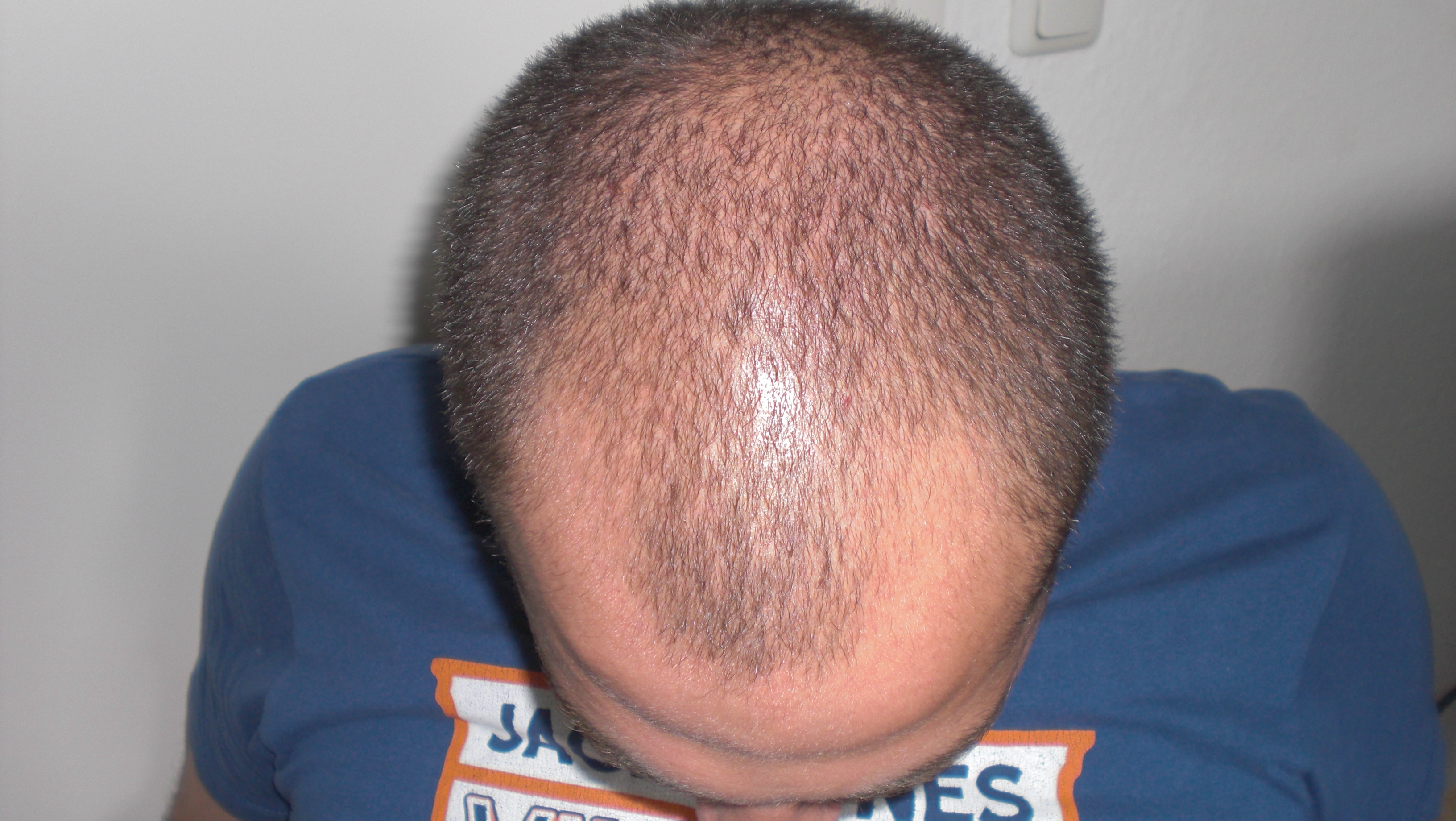 Eigentlich sehe ich schon einen einigermaßen verwertbaren Donor. Die Haare sind immerhin auf eine Kürze reduziert, die einen Hautschimmer erkennen lassen muss. Außerdem Blitzaufnahme! Gewiss, in der Pole-Position befindet er sich wohl nicht. Er erinnert mich an meinen und da geht schon etwas. Aber man muss unbedingt das Alter berücksichtigen (daher auch "relativ" gut). Für eine HT ist Suni vermutlich zu jung und daher ist der Donor nur eine Momentaufnahme. Im neuen, zweiten Bild kann man aber auch einen gewaltigen Bartwuchs erkennen. Angesichts eines zu prognostizierenden NWs wäre da sicherlich auch BHT eine Teilaltalternative.