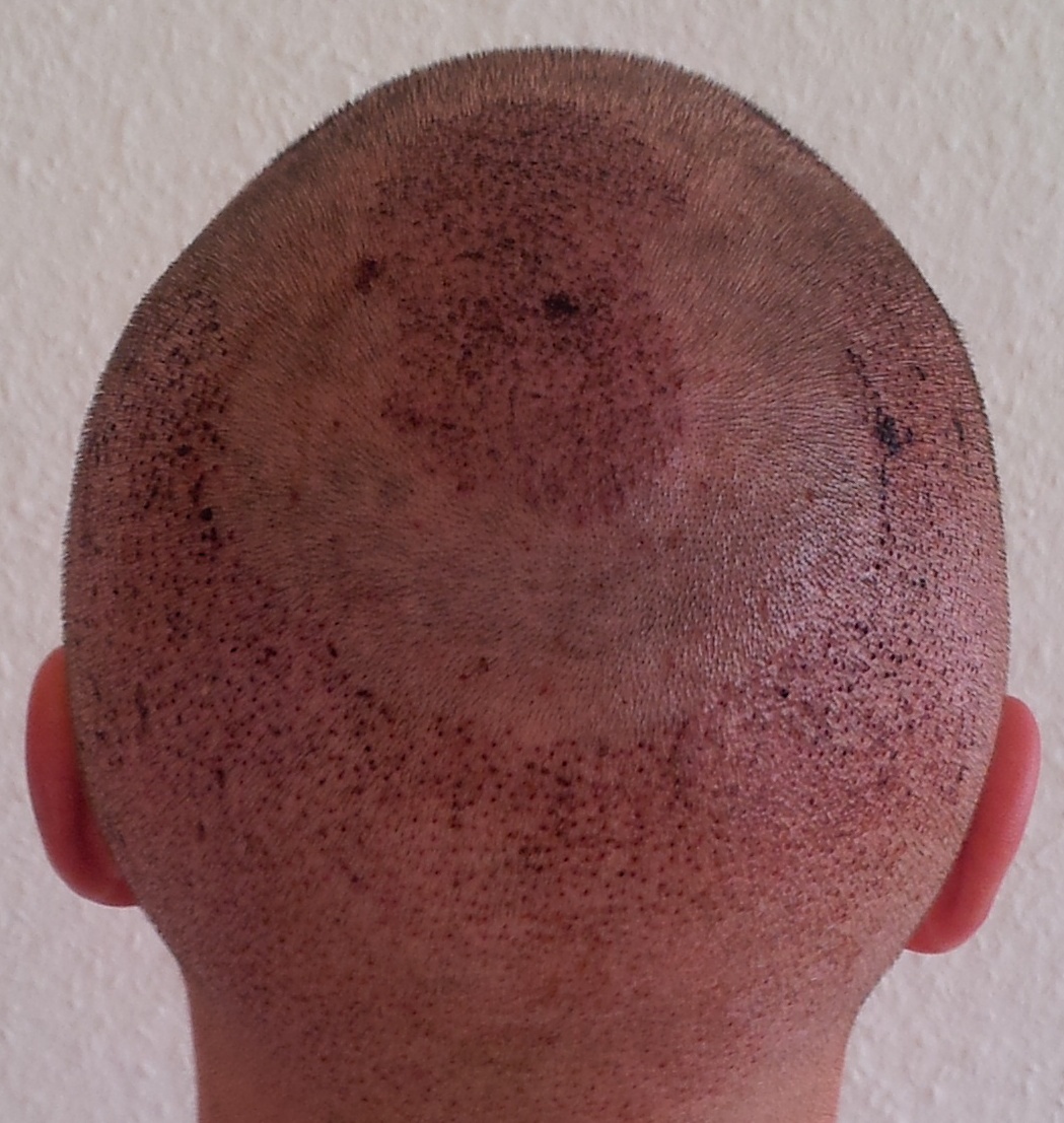 also was das "Ergebnis" angeht: Das was du hier auf den Bildern siehst ist nur ein vorläufiges Ergebnis, da die Grafts nach ca. zwei Wochen alle rausfallen. Bei mir sind jetzt mittlerweile zwei Monate nach der OP, so dass aktuell kein einziges in der zweiten Sitzung transplantiertes Haar auf meinem Kopf zu sehen ist Sad. Das Wachstum wird etwa in 1 - 2 Monaten einsetzen, wobei die Tonsur etwas mit dem Wachstum hinterher hinkt (hier muss man ca. mit einem halben Jahr nach HT mit dem Wachstum rechnen, so die Info, die ich erhalten habe). Werde bei eintretendem Wachstum paar Bilder bereitstellen.